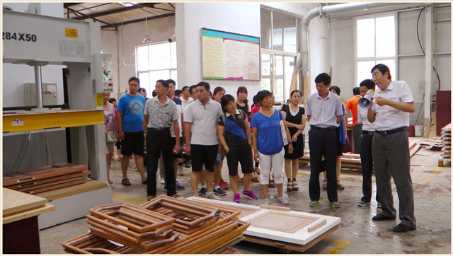 从甄选剖料、完美拼皮、合理结构再到环保涂装,一个个车间看过来,大家对万家园的产品有了更深的了解,一位客户说:“果然是百闻不如一见,确实是真材实料,做工好,就像咱山东人一样实在。刚才我闻了一下刚喷好油漆的木门,真的没有刺鼻的油漆味,水性漆果然环保。我们买的放心,用着更安心!”