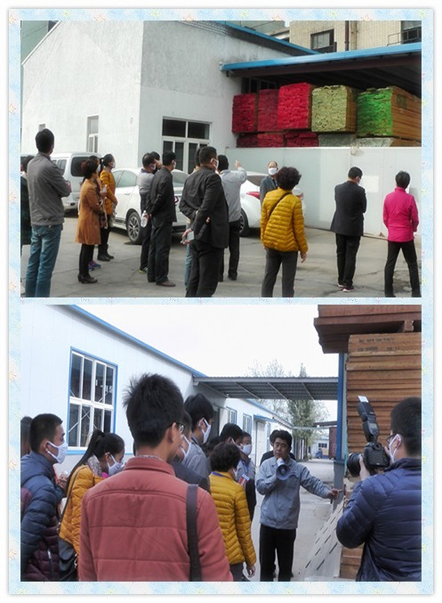 在公司经营科仇健经理的陪同下,寿光的朋友们开始参观工厂。首先映入眼帘的是万家园精心优选的特级木材!