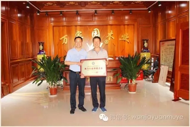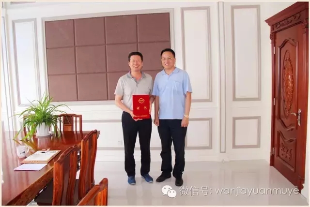 参观完毕,双方就木门行业现状及前景进行了深入探讨,刘会长表示万家园不愧是木门行业特级企业,在整木异型产品创新、环保涂装等方面值得广大木门企业学习和借鉴。为表彰万家园在行业内的突出贡献,刘会长为张桂生董事长颁发了中国木材与木制品流通协会第七届理事会常务理事的荣誉证书。