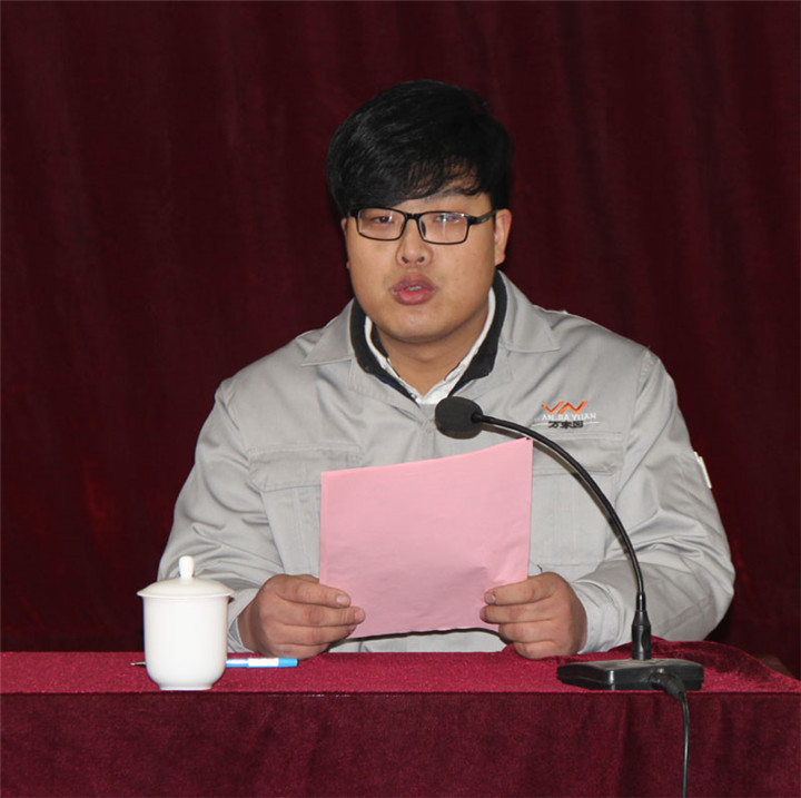 优秀员工代表刘瑜代表获奖员工在上台发言,他表示能够成为万家园的一员非常自豪,代表广大获奖人员对公司及同事表示感谢,并号召全体员工在新的一年将继续发扬奋进精神,爱岗敬业、勇于创新,为公司发展贡献力量。