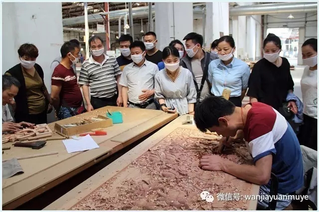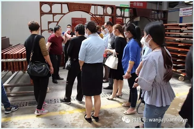 让客户走进工厂,亲身体验,眼见为实。万家园经营科闫经理逐个车间为业主们作了细致的讲解,包括板材的选择、国际一流木作设备、先进的制作工艺及流程等