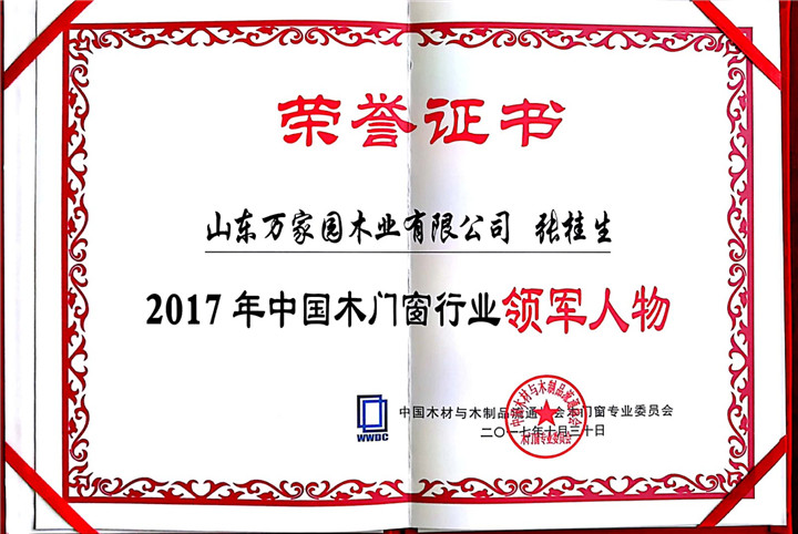 国家工商总局消费者权益保护局处长吴臻先生、巢湖市副市长梁善斌先生、中国木材与木制品流通协会会长刘能文先生、副会长兼秘书长李佳峰先生、木门窗专业委员会会长张国林先生、常务副会长张鹏先生、湖北省门业协会、广东省门业协会、四川省门窗行业协会等十余家地方协会代表以及全国各地木门窗企业家、行业精英、上下游产业链供应商、媒体支持代表等共计300余人齐聚一堂,为中国门窗界奉献了一场精彩纷呈的思想盛宴。 在本届会上万家园被中国木材与木制品流通协会评选为“2017年中国木门窗行业十大整木定制品牌”、“2017年中国木门窗行业十大实木门品牌”、万家园董事长张桂生先生被评选为“荣获2017年中国木门窗行业领军人物”!