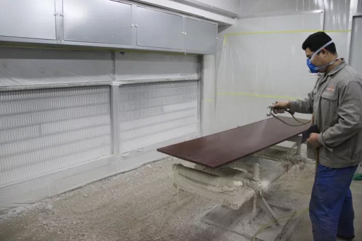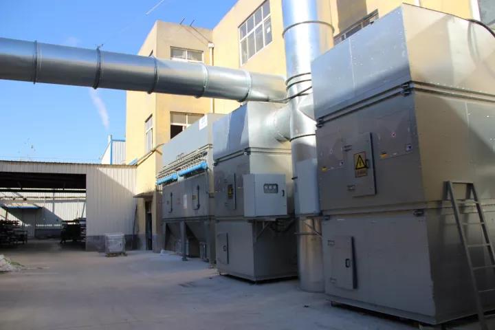 公司与设备厂家合作引进目前国际上最先进的DDBD技术和光氧催化技术,喷涂过程中产生的漆雾首先经过干帘式喷漆柜的吸收,经过滤纸、玻璃纤维阻漆板、活性炭层层过滤,降低了喷涂过程中的废气排放。剩余漆雾则被引风系统带入VOCs处理系统,经过降压段、等离子电场段、光氧化+触媒反应段、等离子催化+触媒段、吸附段等5段处理系统将气体中的有害物质充分净化,净化后的气体经过15米的管道排放到大气中。
