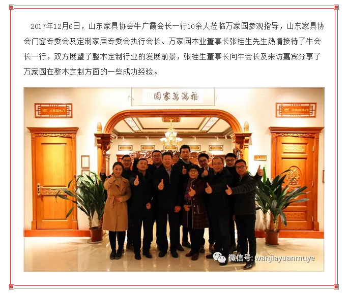 山东家具协会牛会长一行莅临万家园参观指导