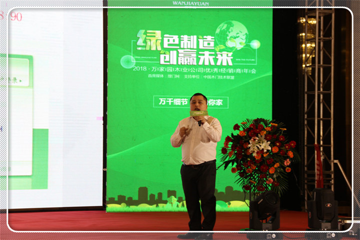 随后,中国木材与木制品流通协会木门窗专委会张国林会长上台致辞:“在过去的一年当中,在环保大趋势下,万家园为木门行业开辟了一条VOCs处理的新道路,体现了万家园作为行业领军企业的责任和担当,2018年市场将进一步向大品牌靠拢,对于大品牌而言前途是光明的,我们必须充满信心!跟定万家园,方能扬帆远航!”
