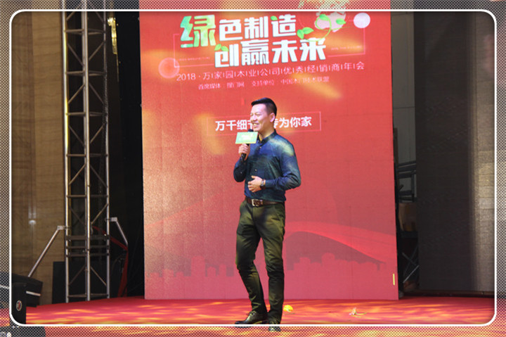 大会在《2017绿色制造,我“门”再攀高峰》的开场视频中拉开序幕,大家共同回顾了2017年万家园对产品、对制造、对环保的全倾全力,展现了万家园28年来以木为心的品质传承和坚守环保的满腔热情。