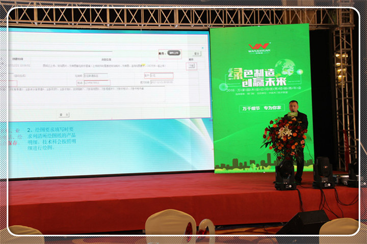 万家园王绍新总经理就2017年工作及2018年发展规划做了详尽报告:“2017年环保形势严峻,但是万家园木门借势2014年以来的油改水工作,加上环保设备的提前上马,全年生产和改造紧张有序,实现产量平稳增长。在环保风暴的巨压之下,万家园木门迎难而上,积极调整思路和发展布局,开拓创新,用实际行动带动了整个行业绿色制造,健康发展,为净化行业、净化祖国的蓝天事业做出自己的贡献。2018万家园将把握环保机遇、继续扩大产能、严抓质量,致力于为消费者打造绿色环保的家居环境;增加专项资金,提升品牌形象,加大品牌宣传力度,努力做好经销商朋友的坚实后盾。”