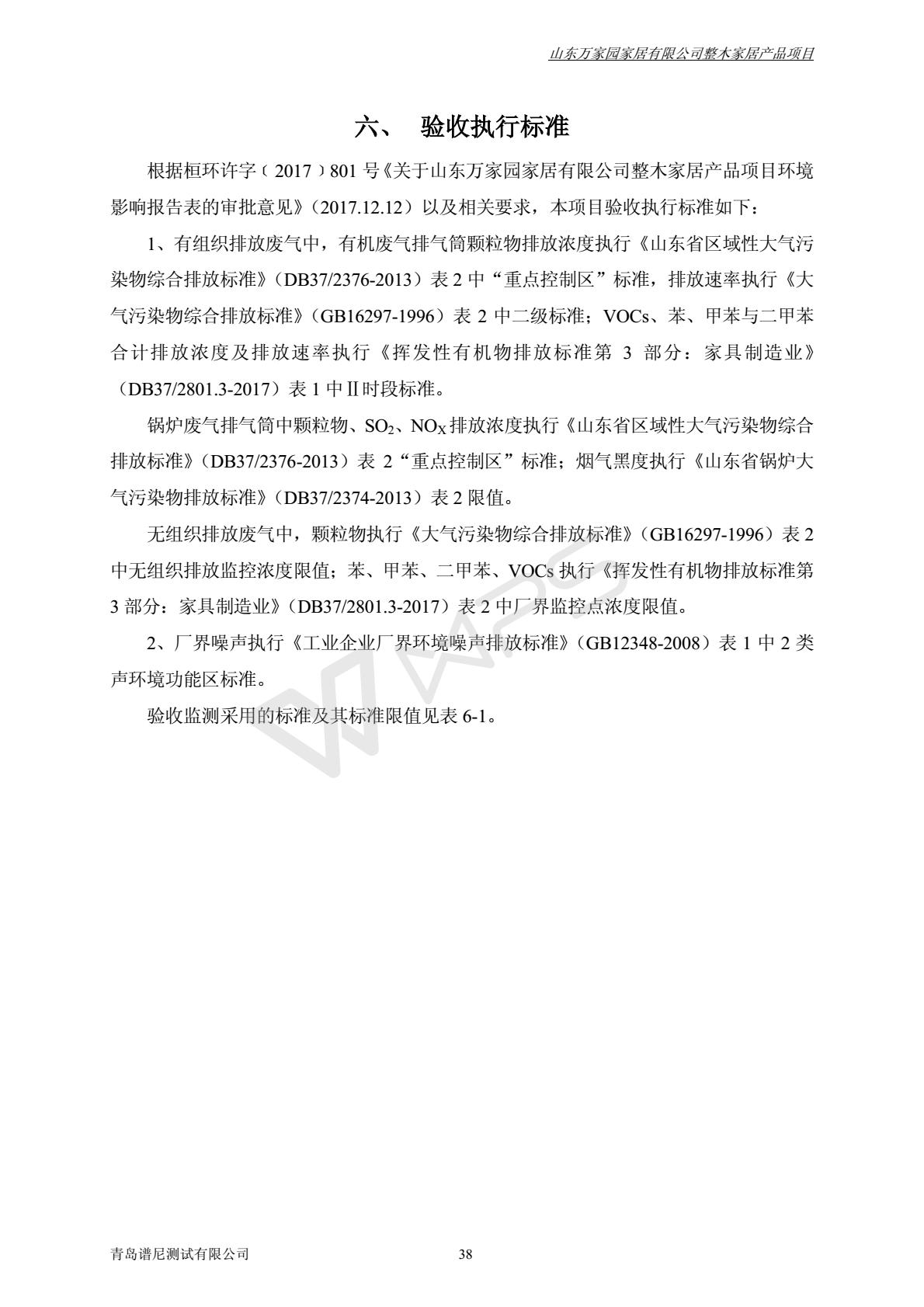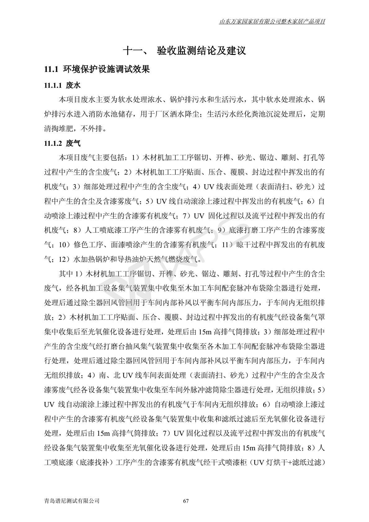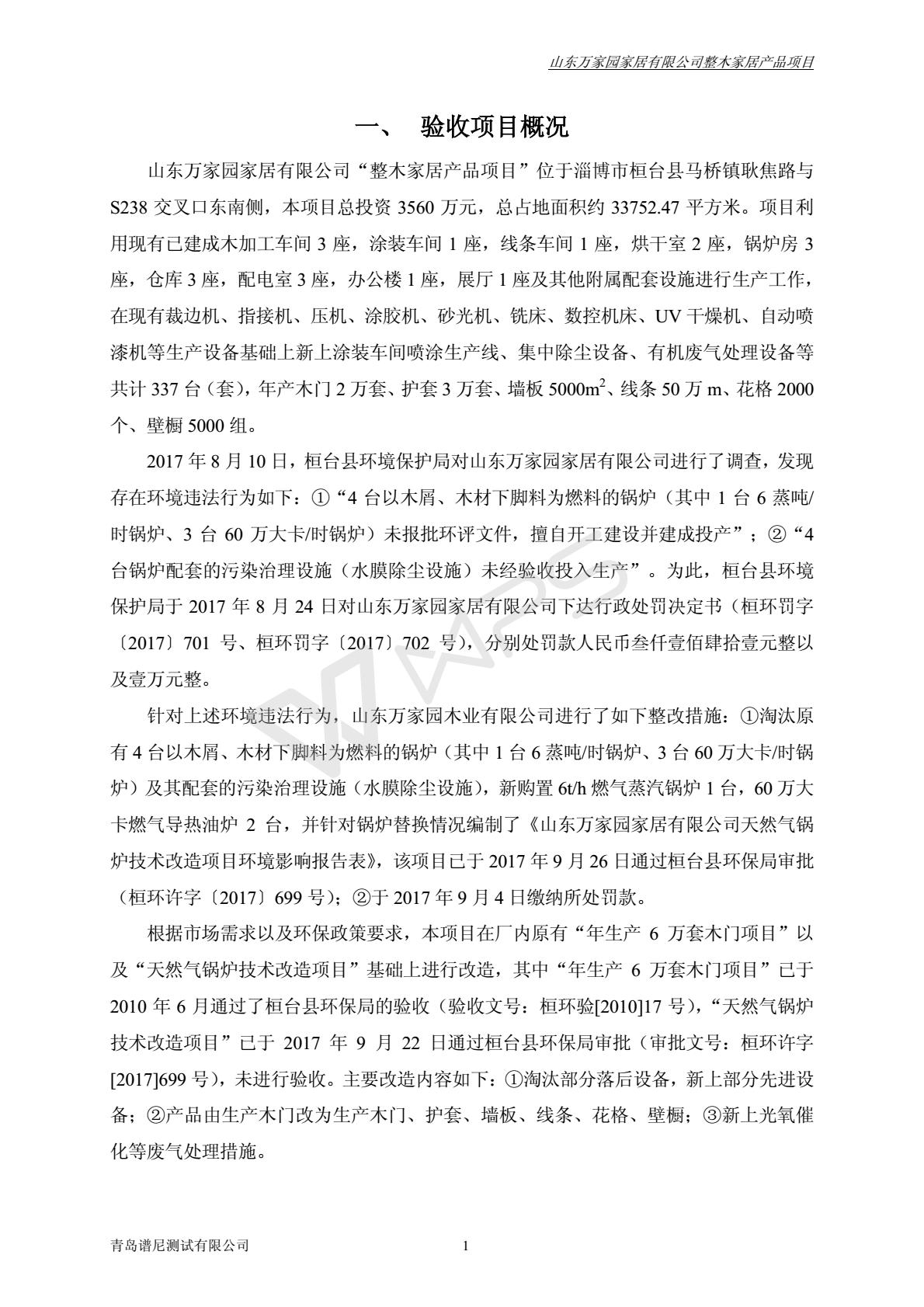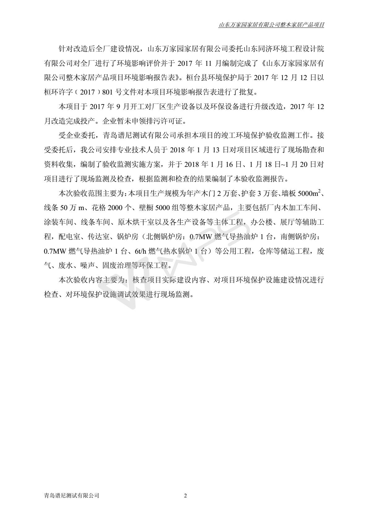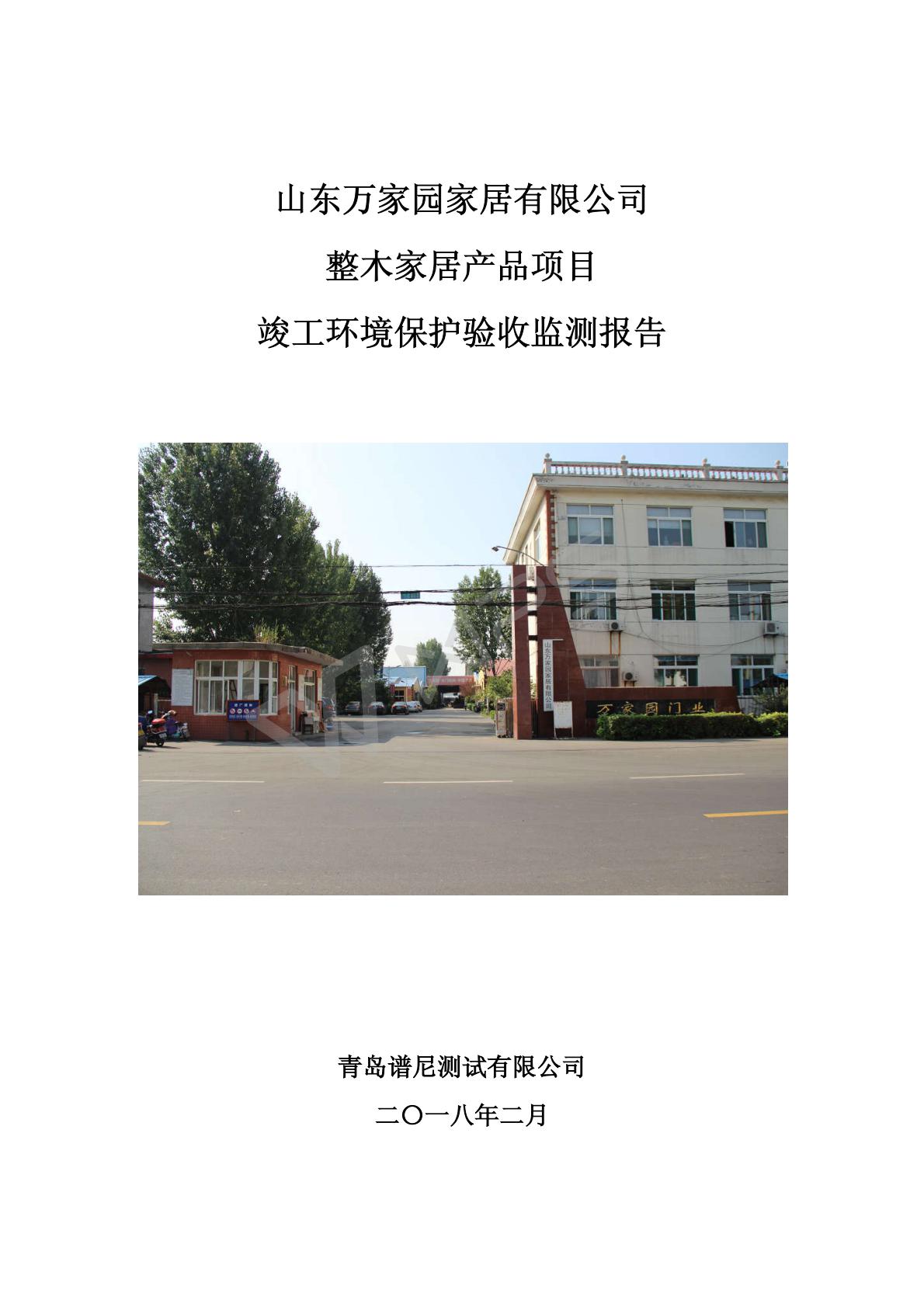 山东万家园家居有限公司整木家居产品项目竣工环境保护验收监测报告