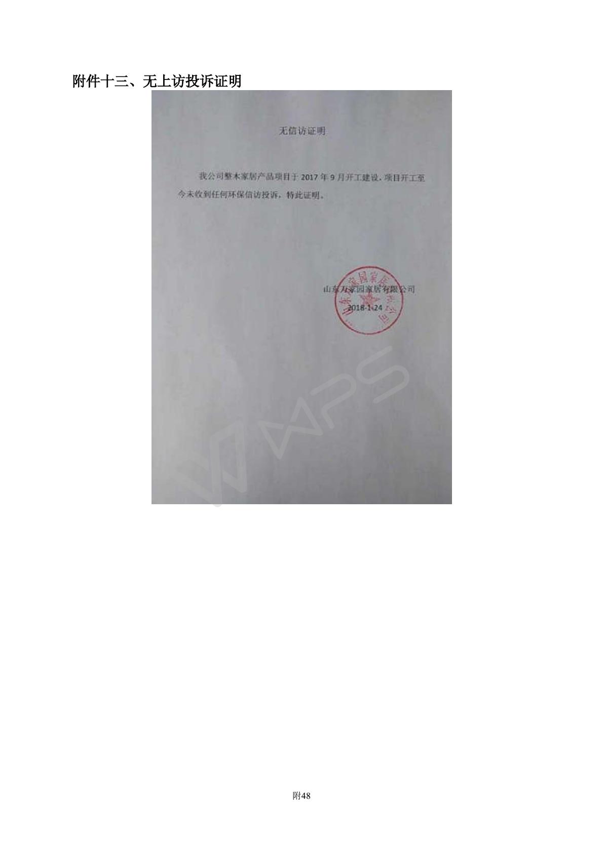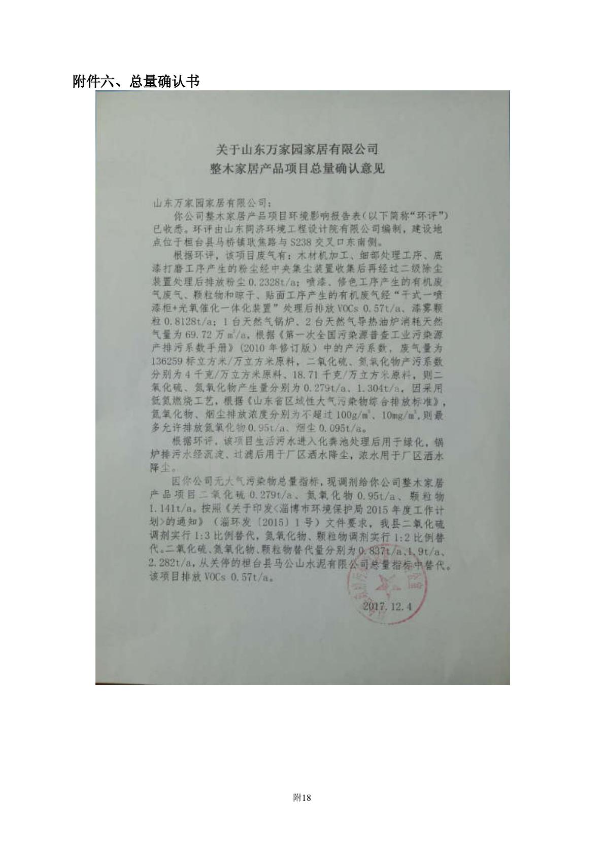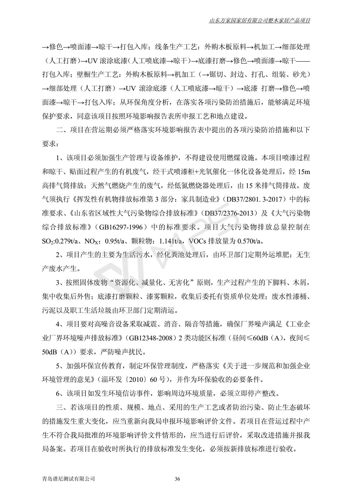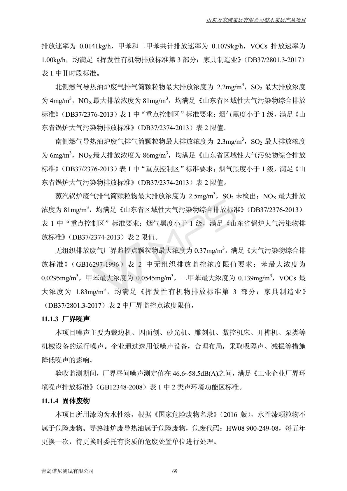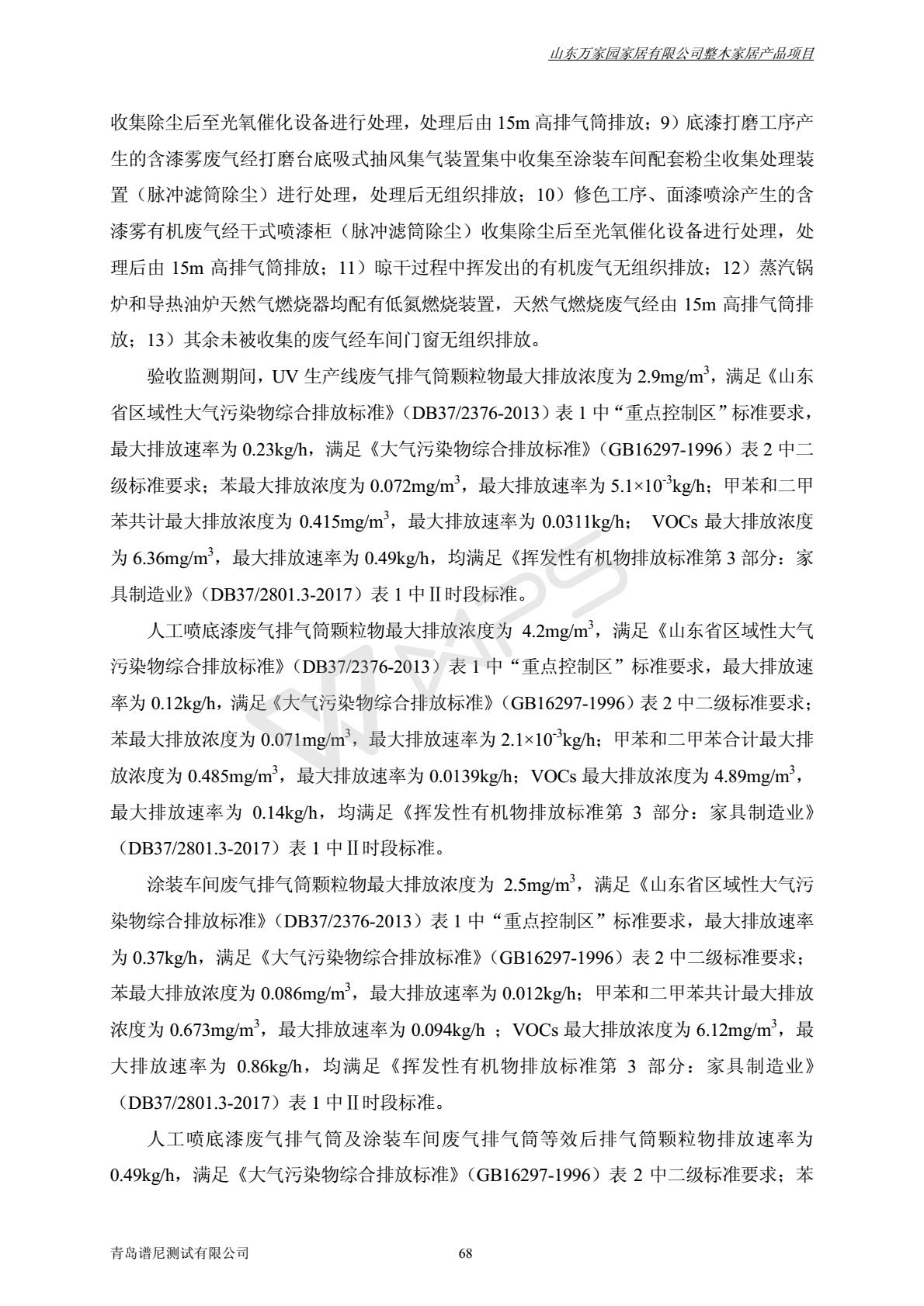 山东万家园家居有限公司整木家居产品项目竣工环境保护验收监测报告