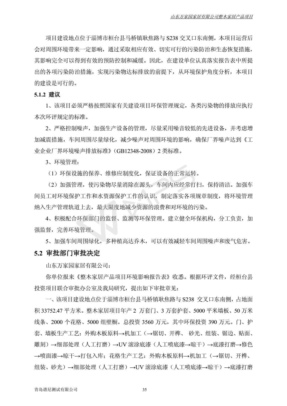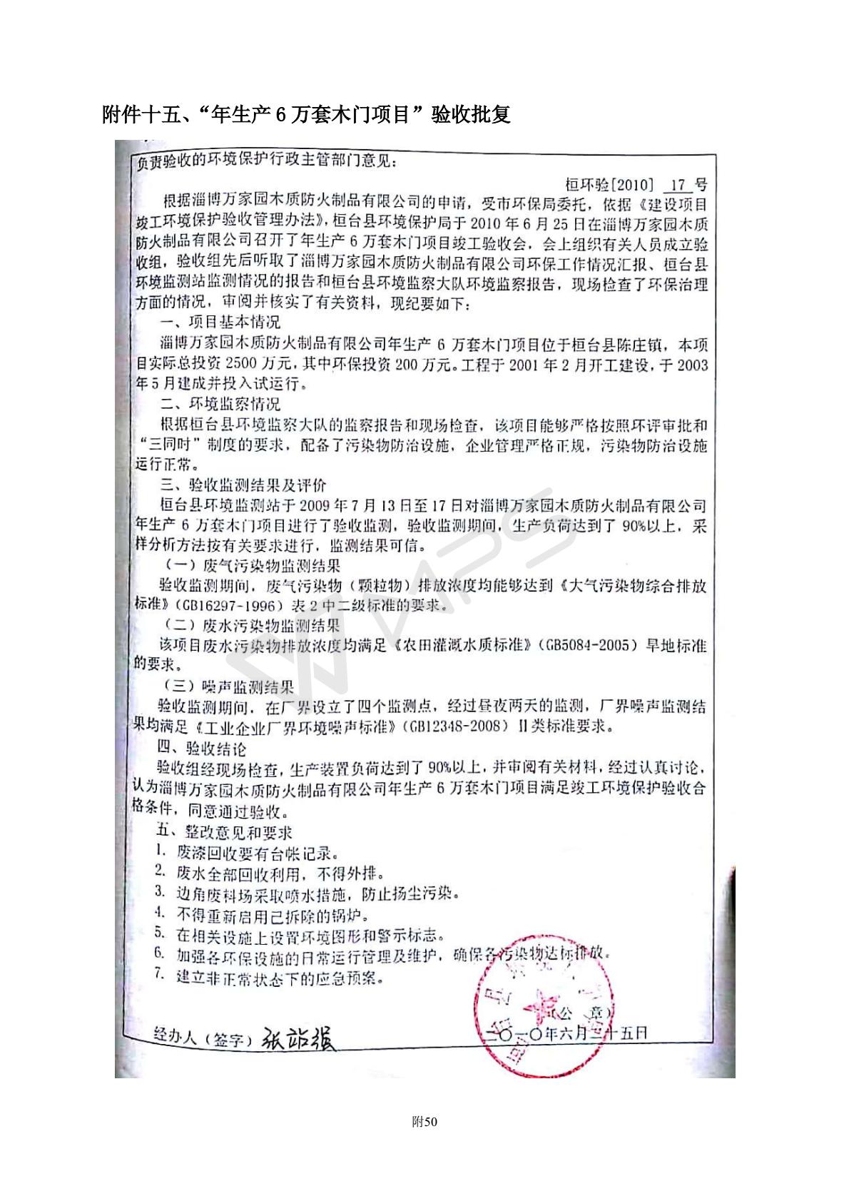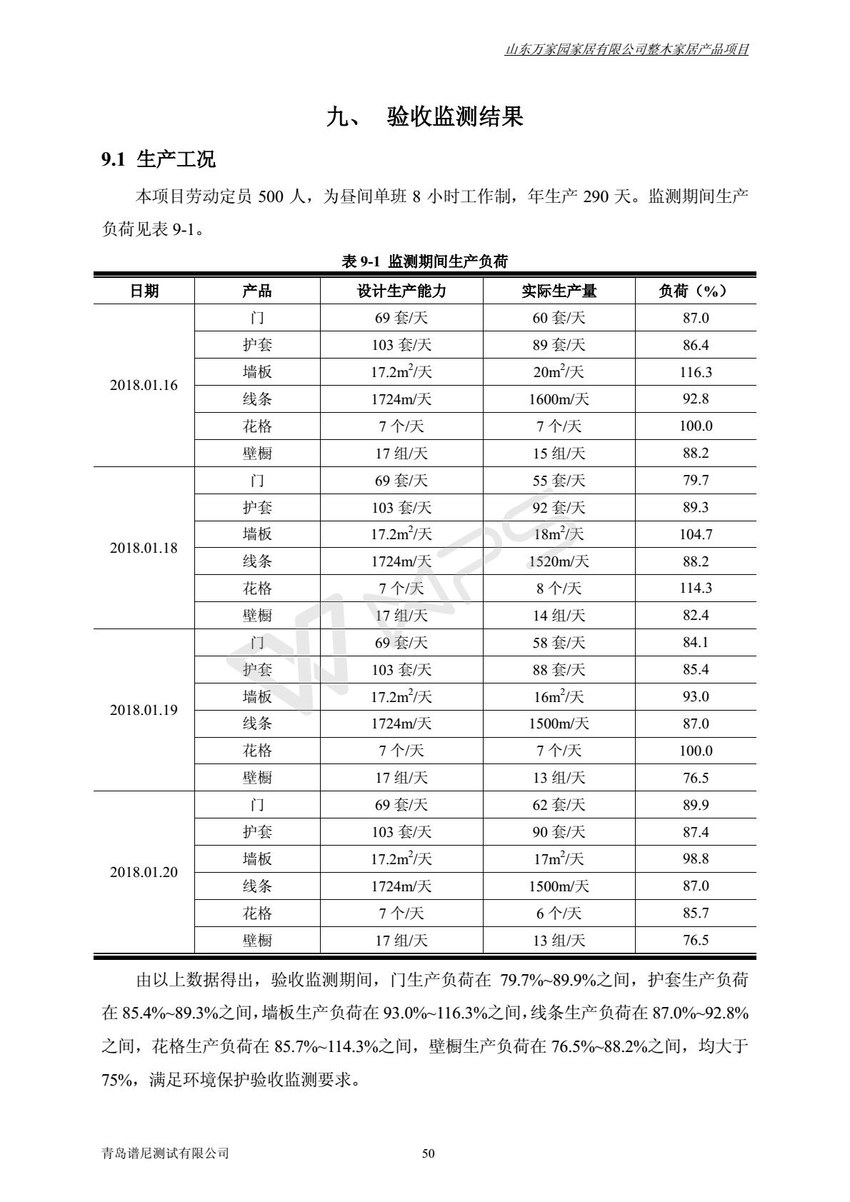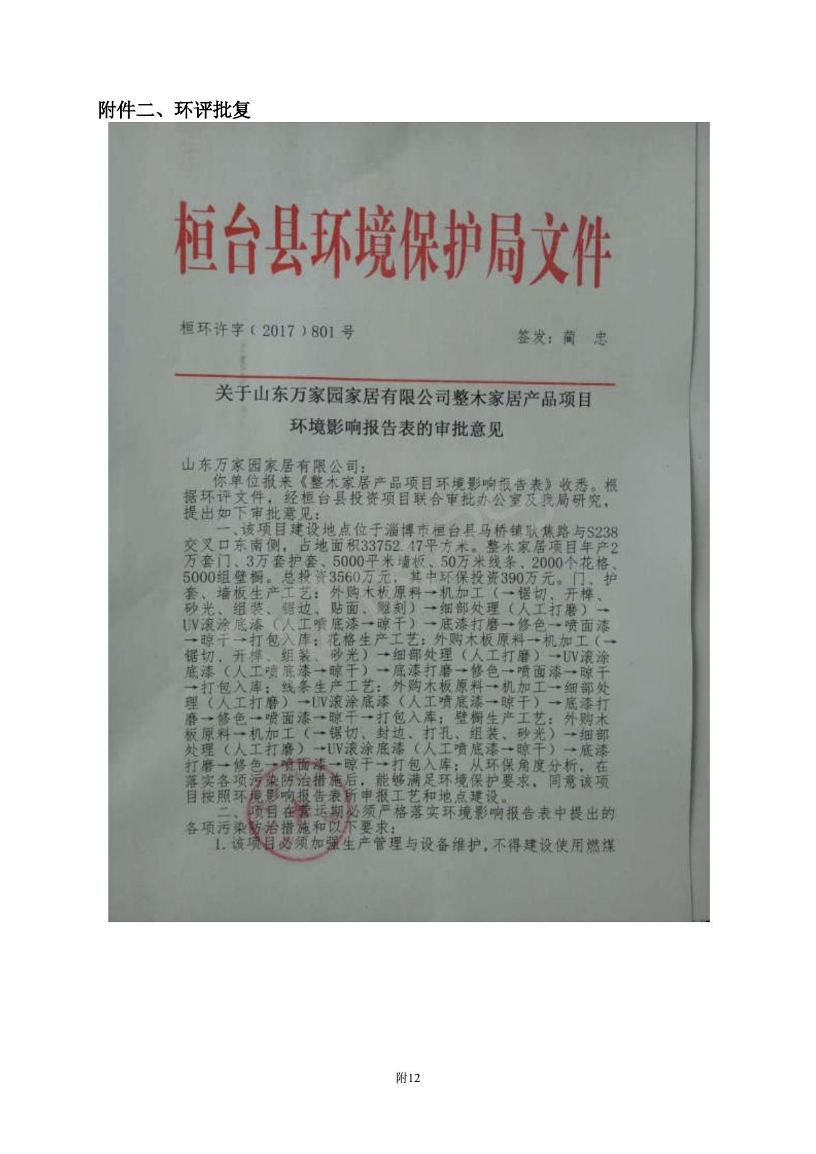 山东万家园家居有限公司整木家居产品项目竣工环境保护验收监测报告