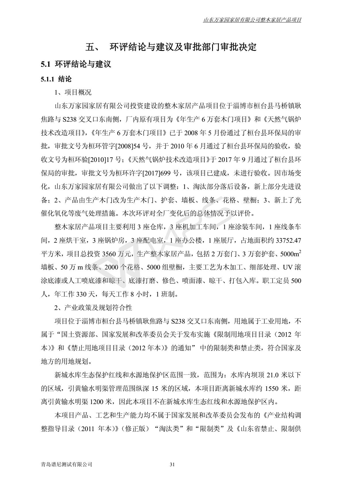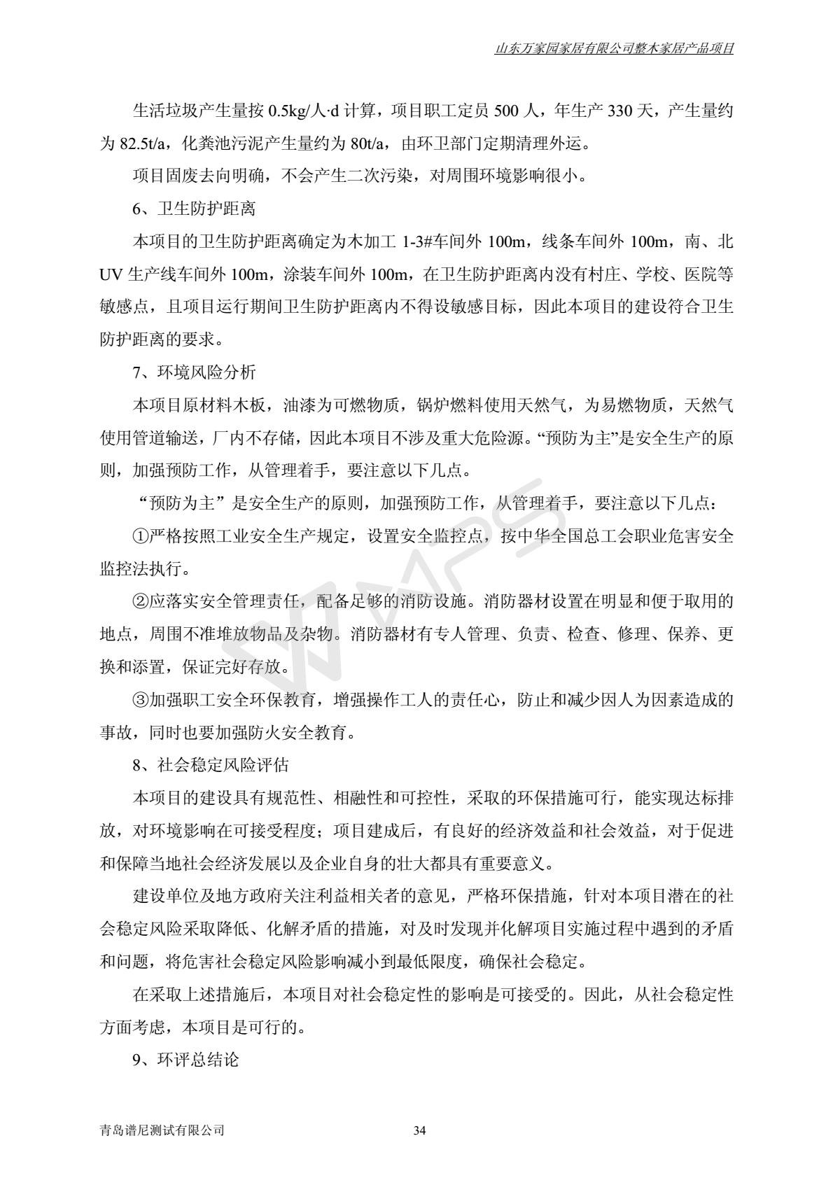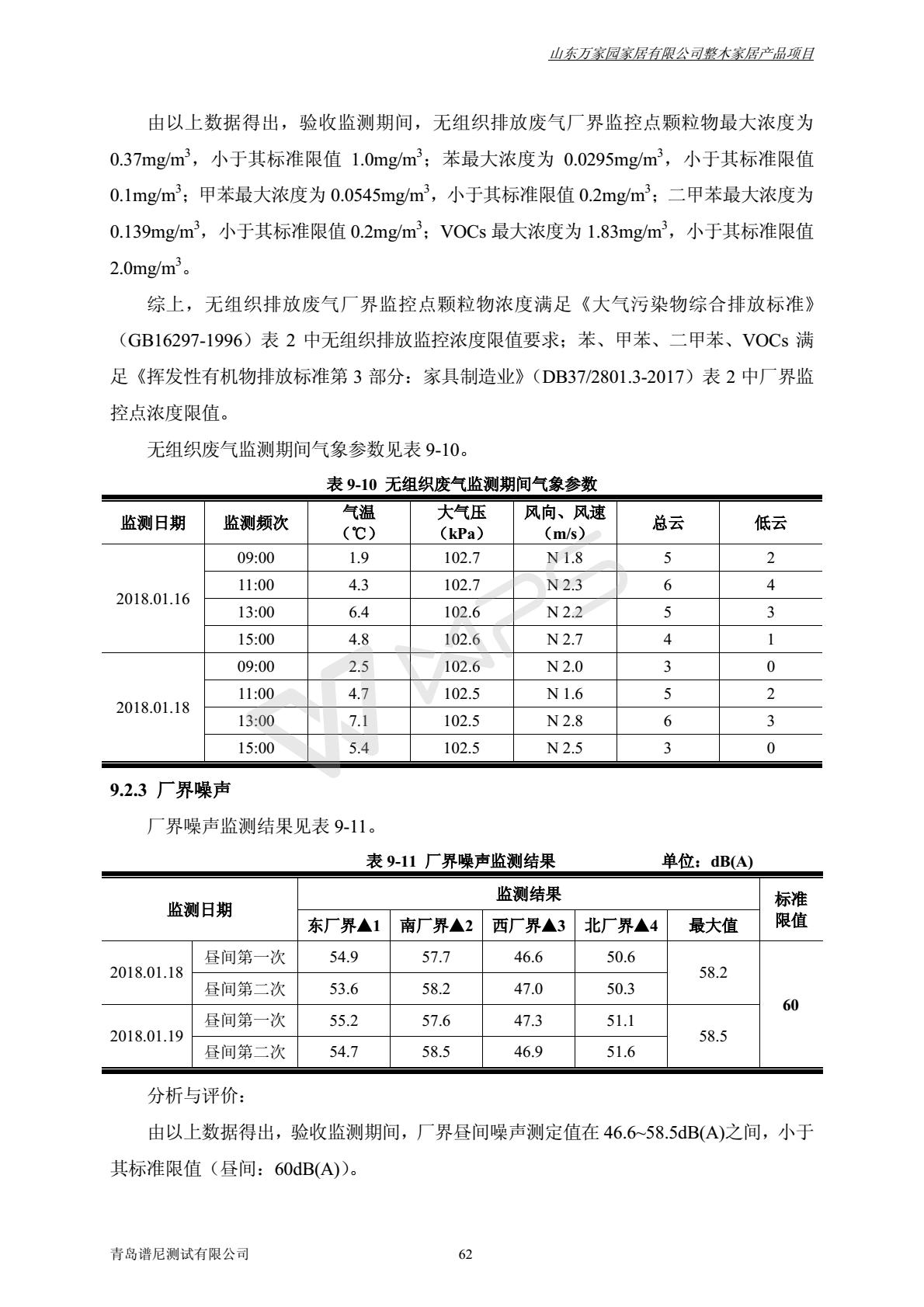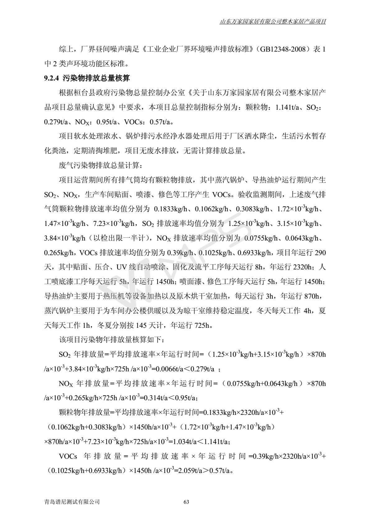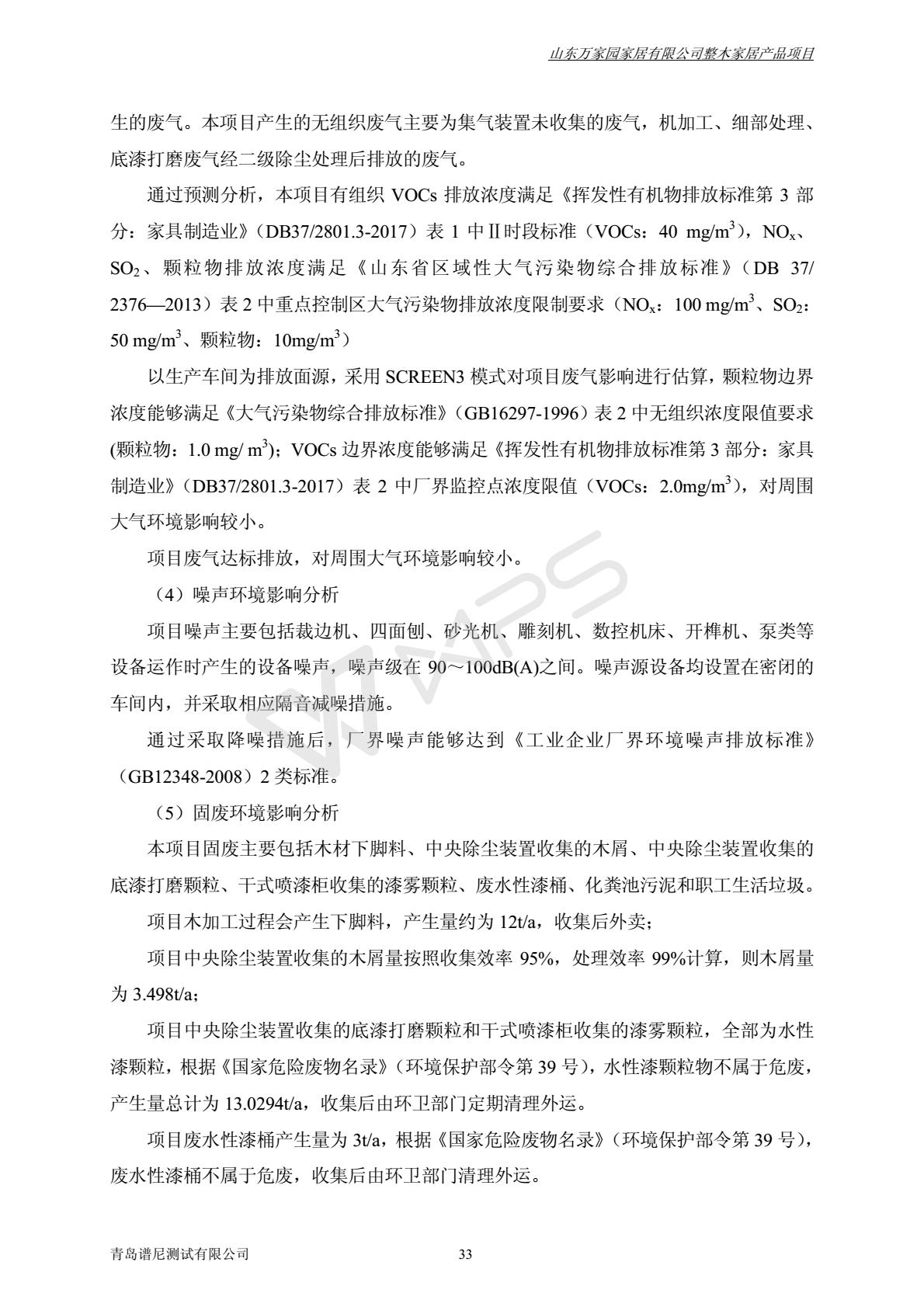 山东万家园家居有限公司整木家居产品项目竣工环境保护验收监测报告