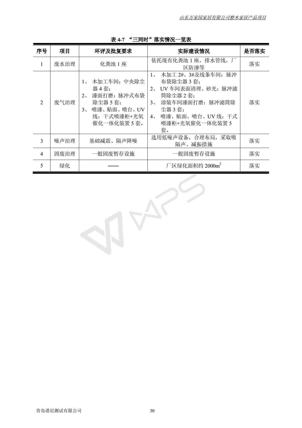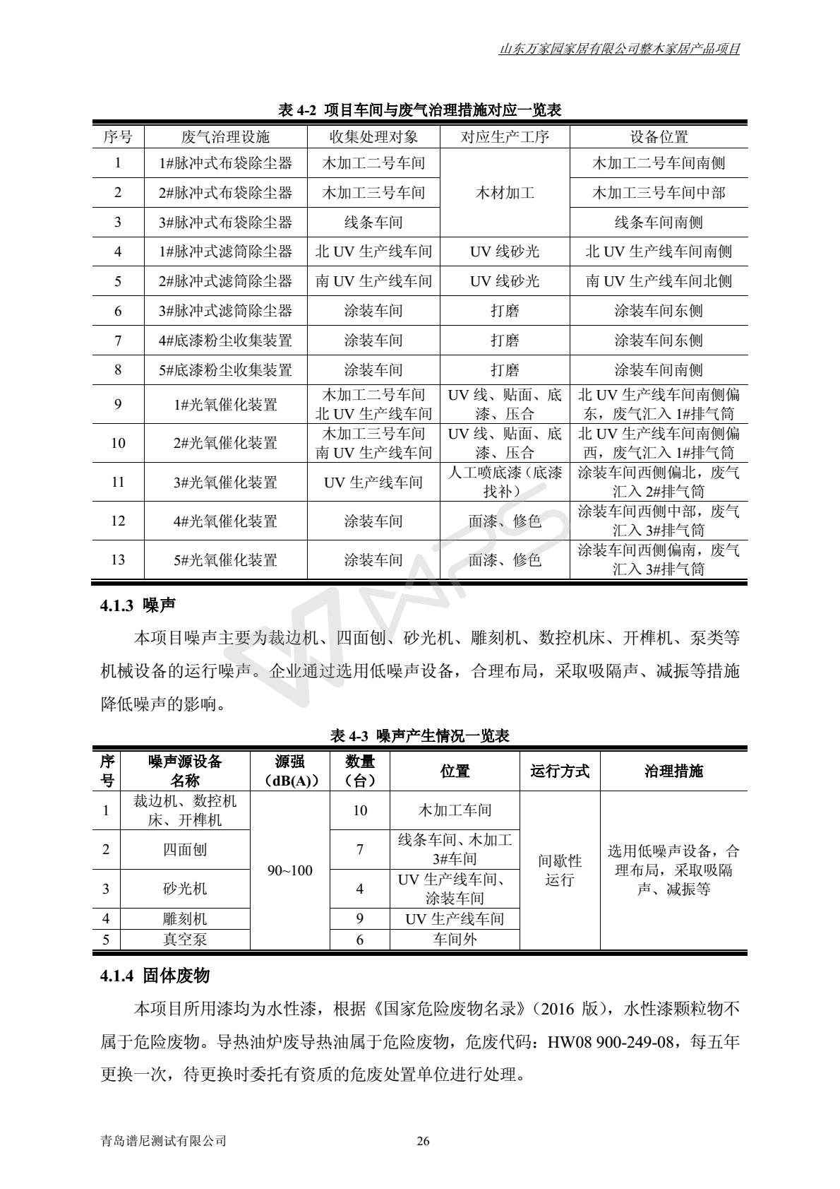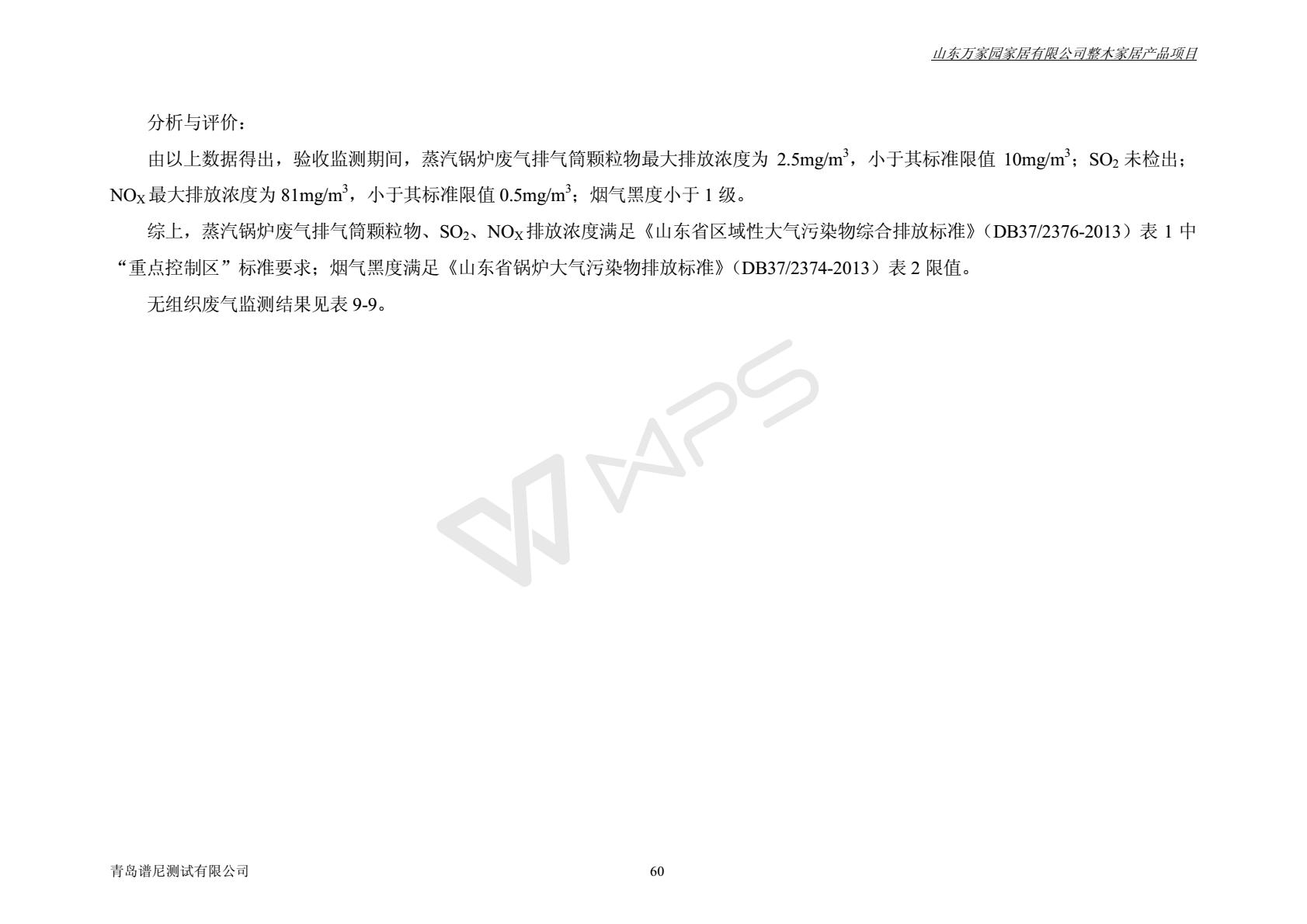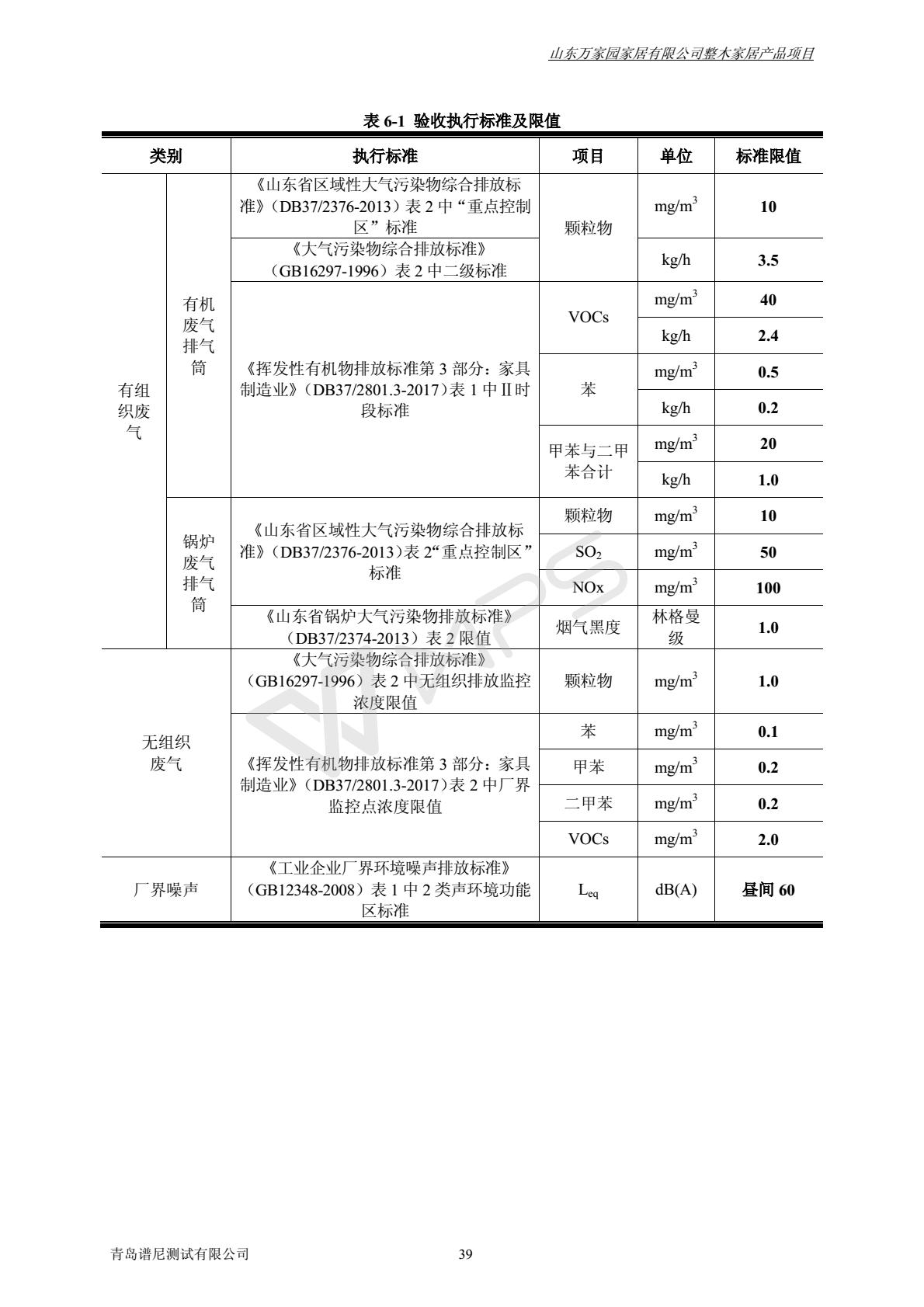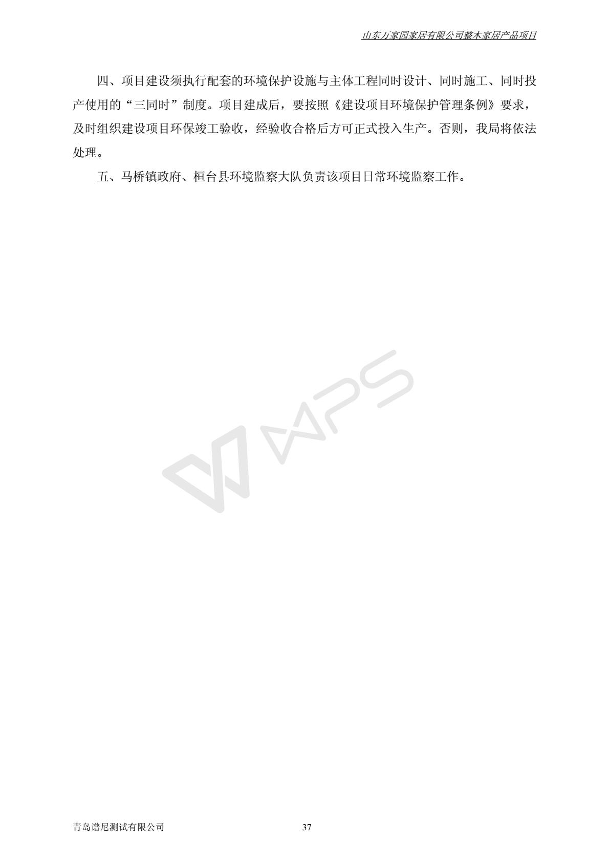 山东万家园家居有限公司整木家居产品项目竣工环境保护验收监测报告