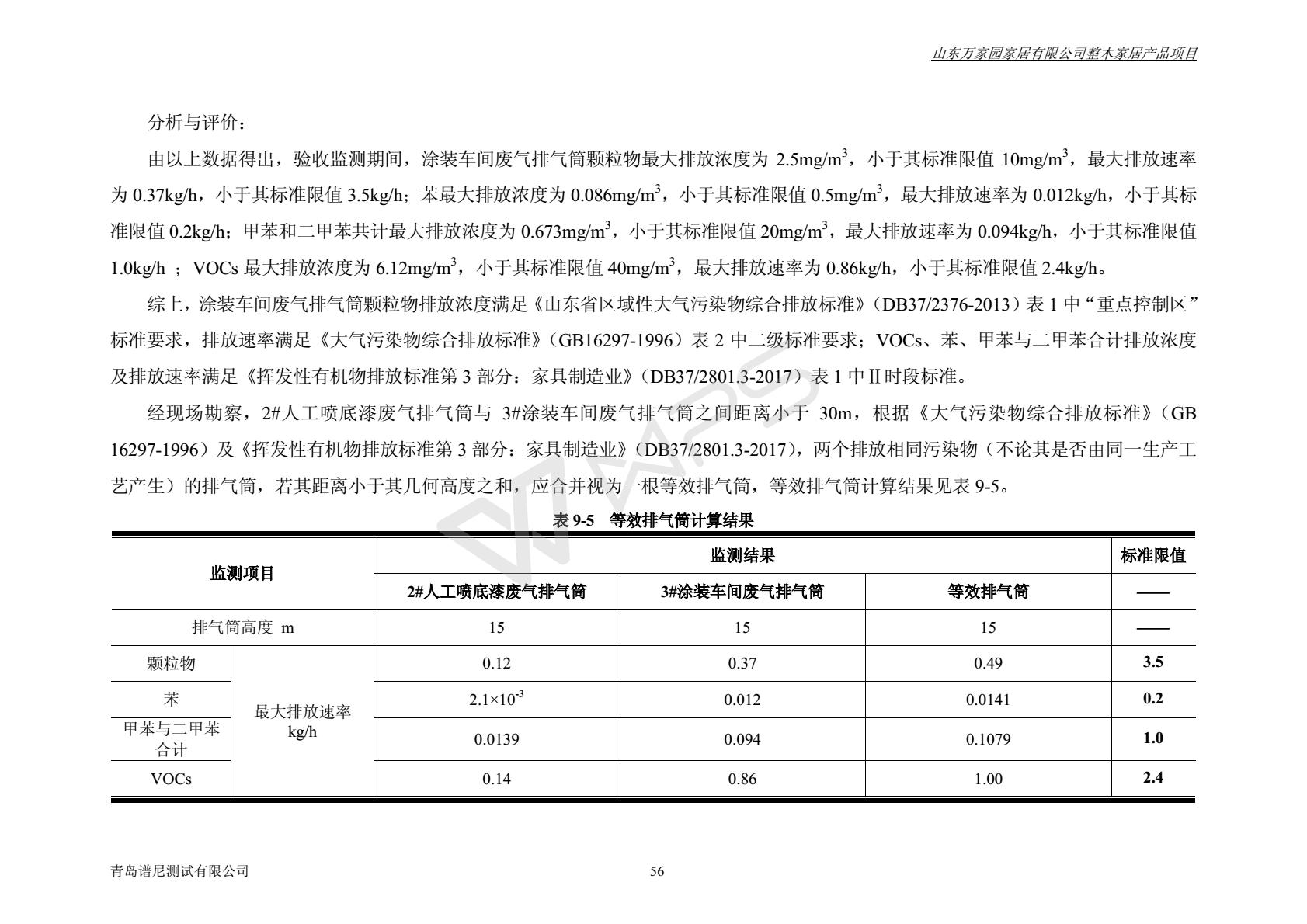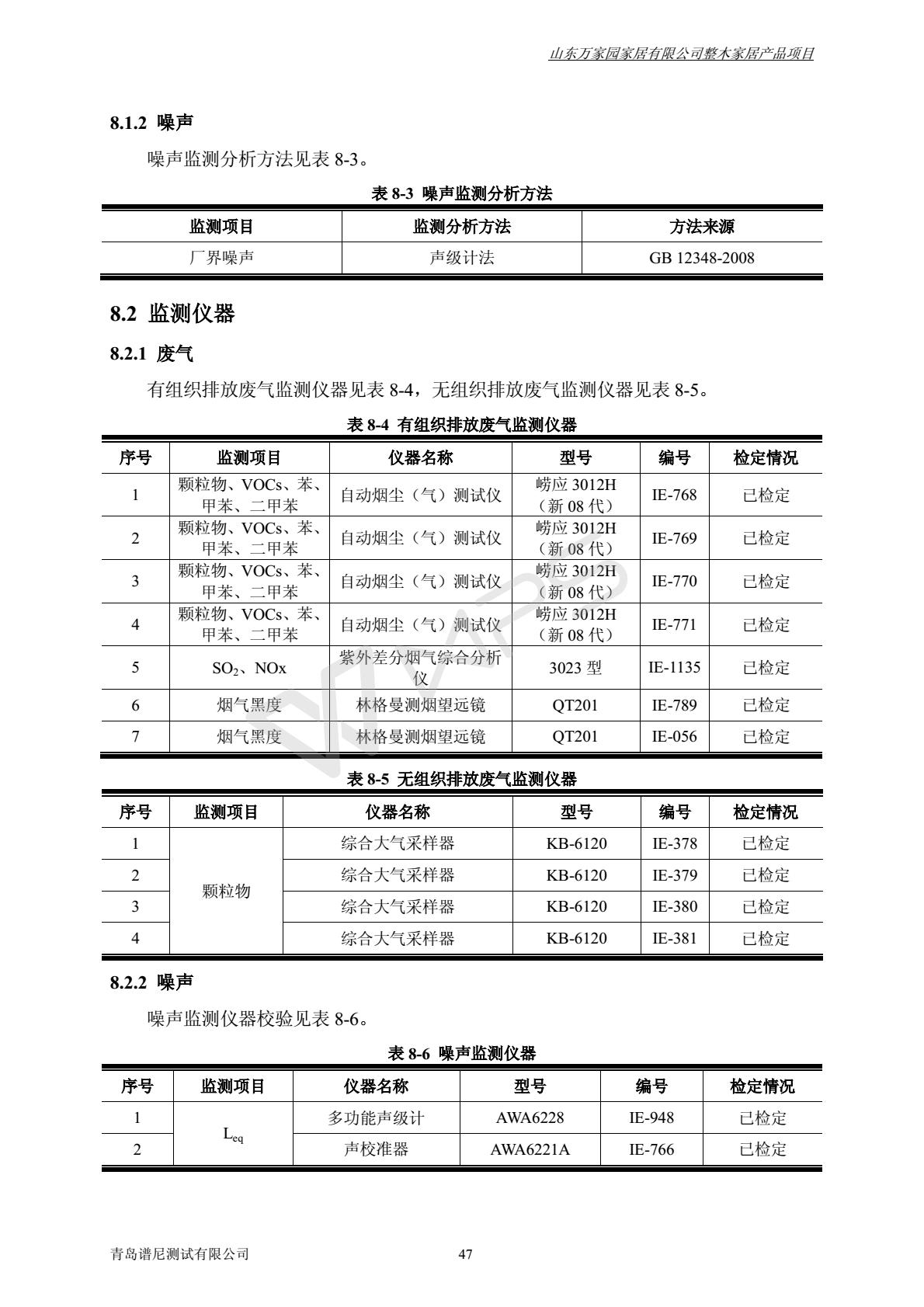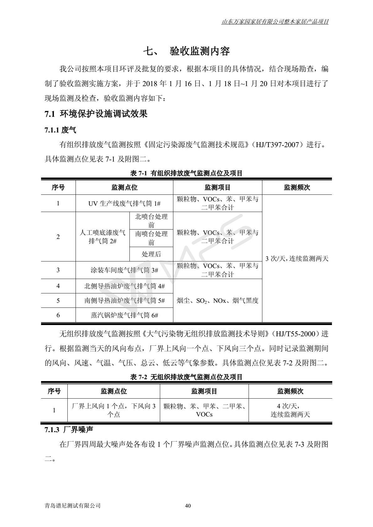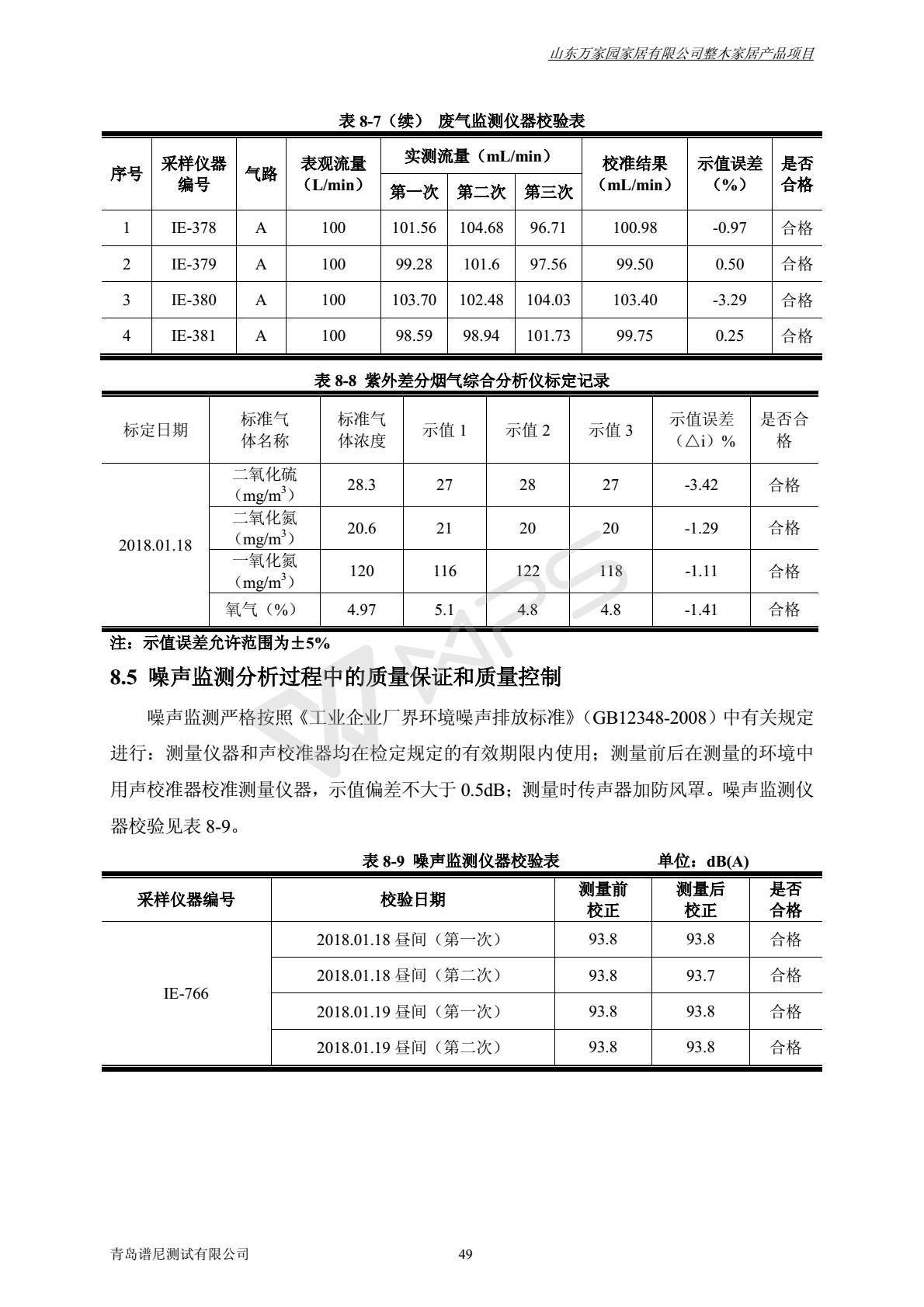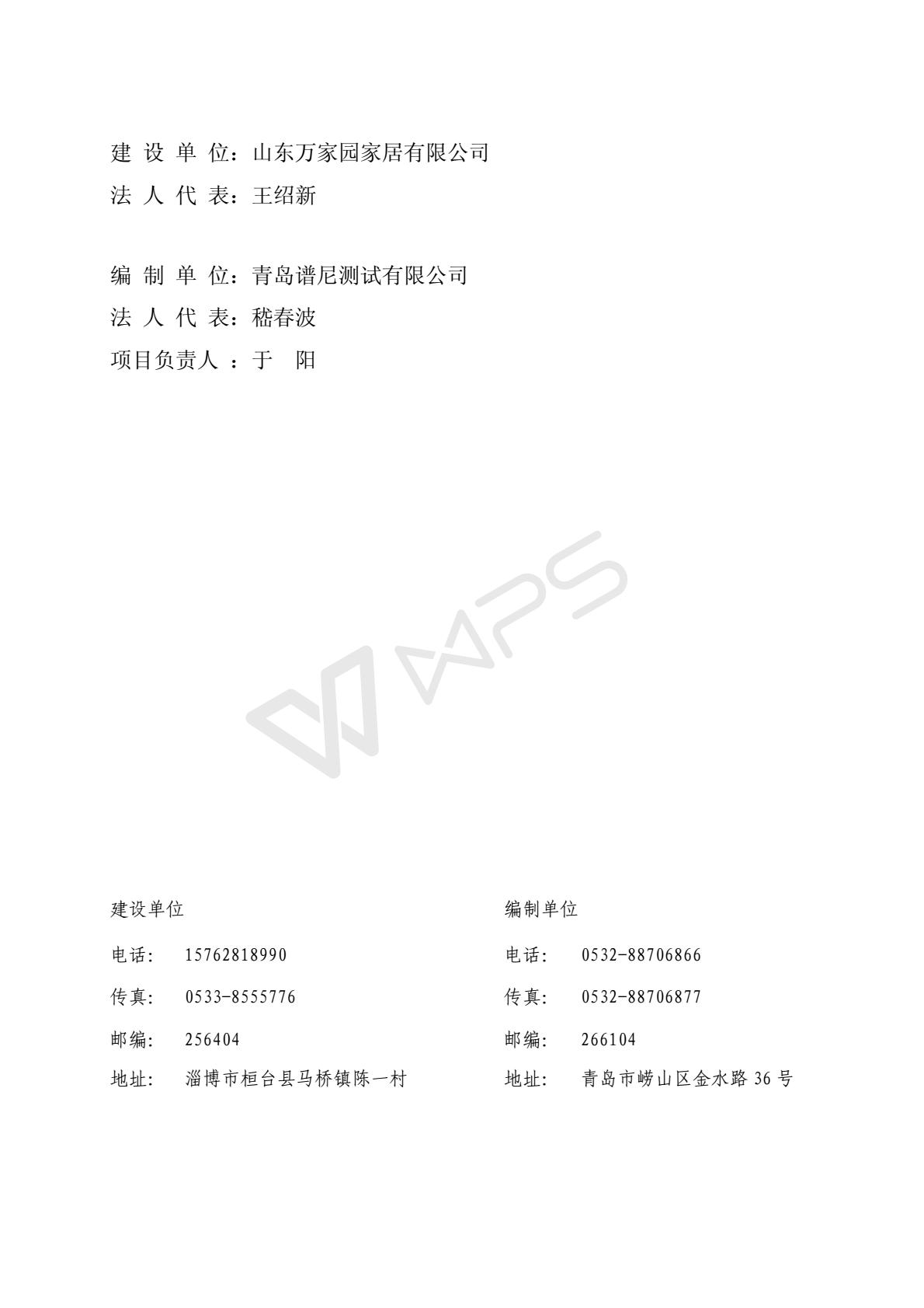 山东万家园家居有限公司整木家居产品项目竣工环境保护验收监测报告