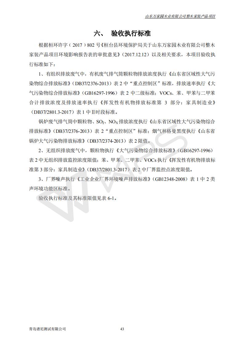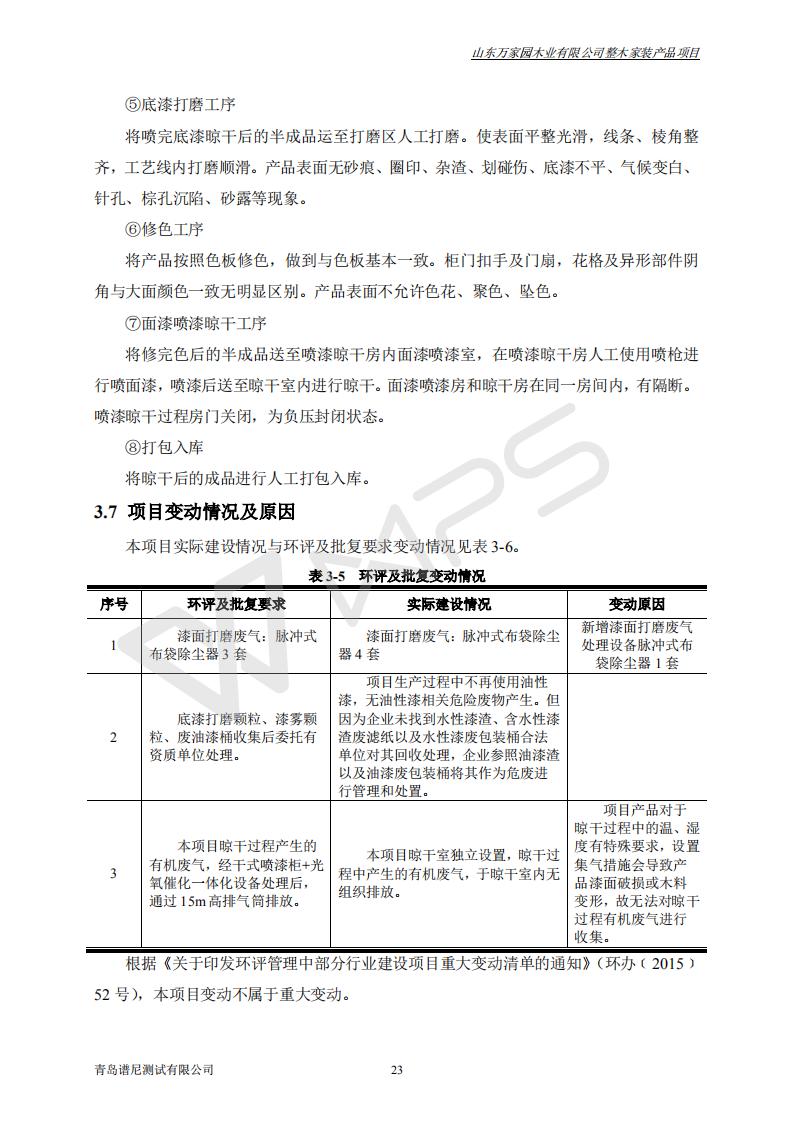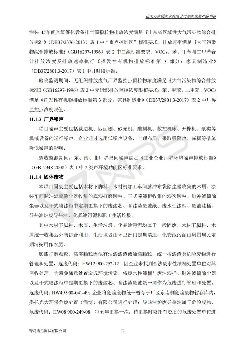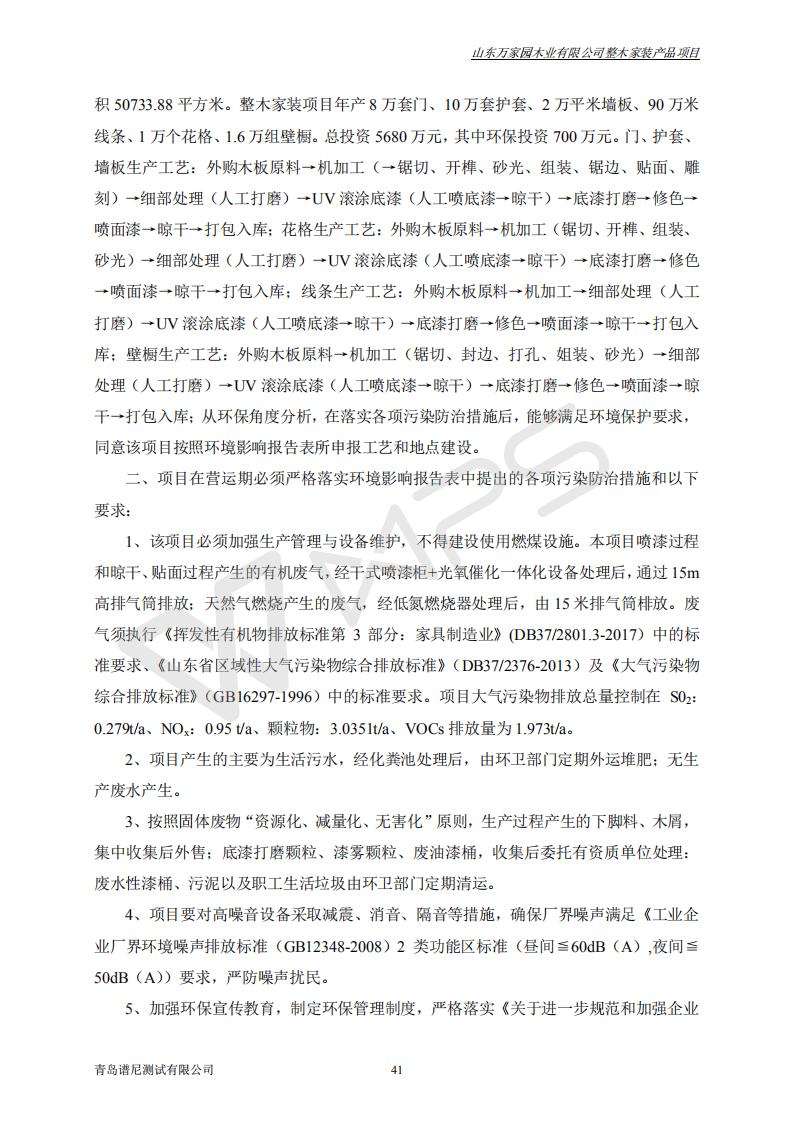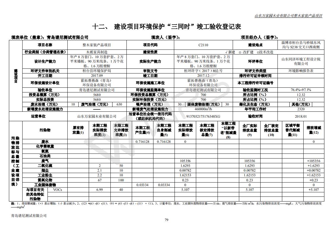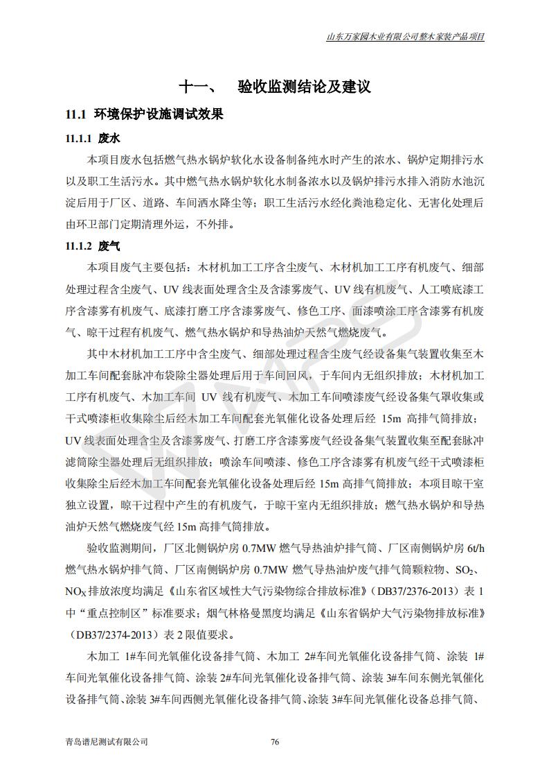山东万家园木业有限公司整木家装产品项目竣工环境保护验收监测报告