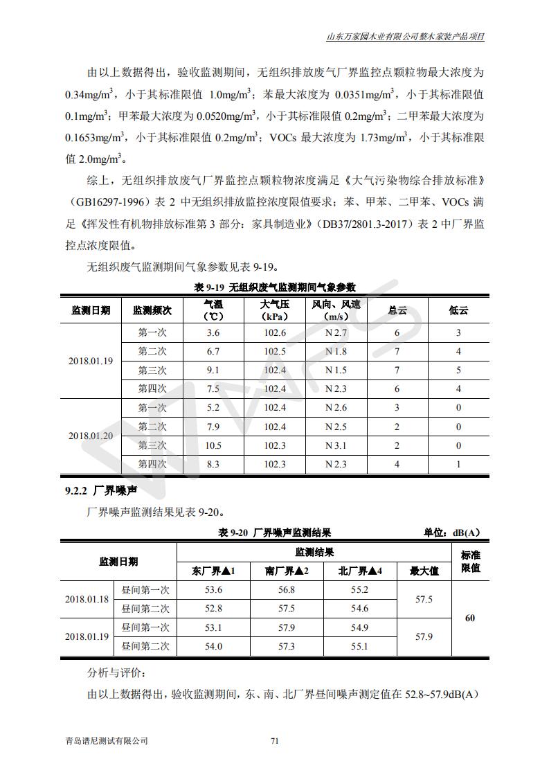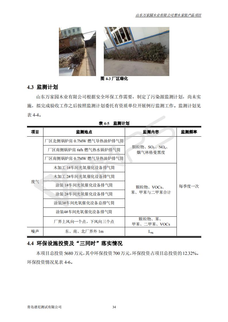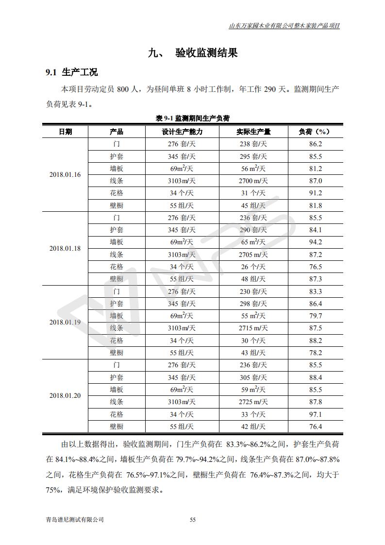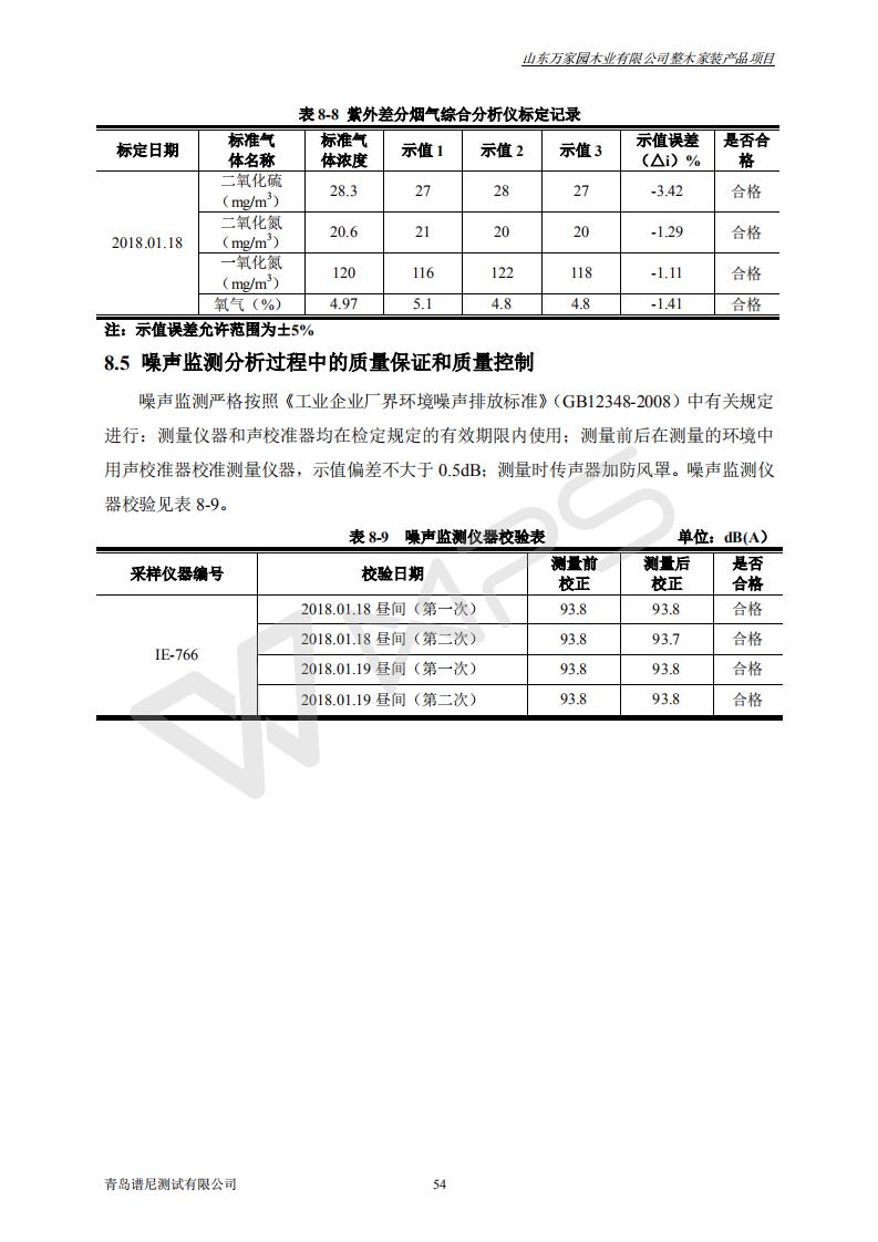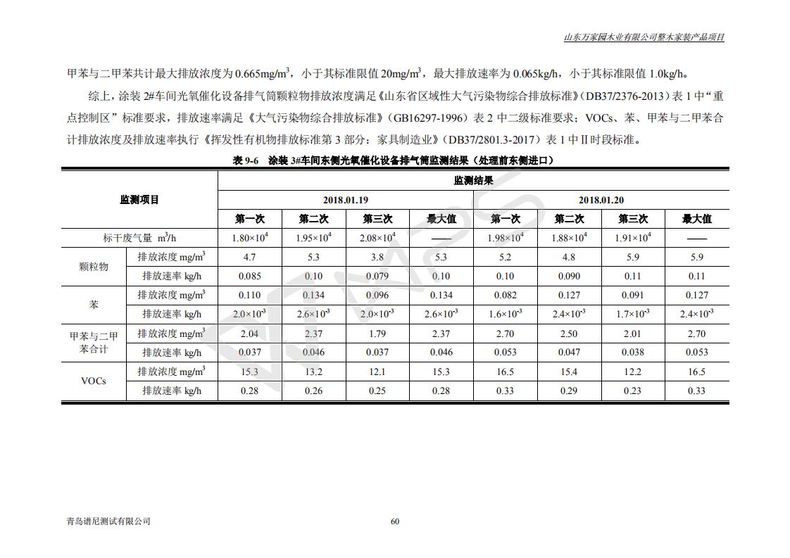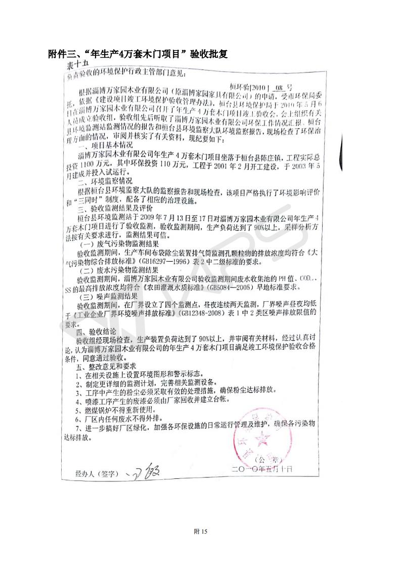 山东万家园木业有限公司整木家装产品项目竣工环境保护验收监测报告