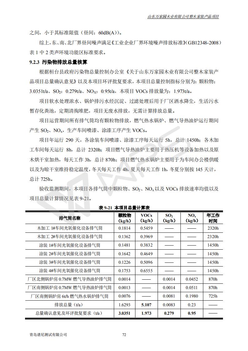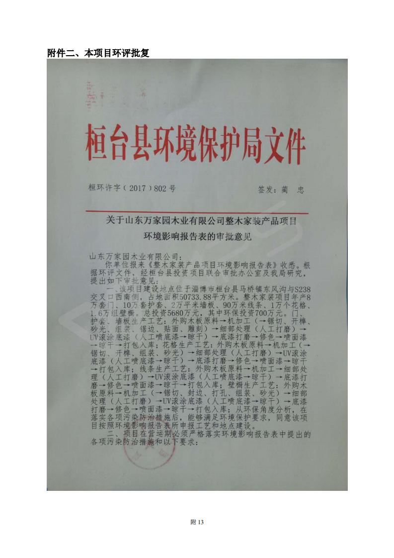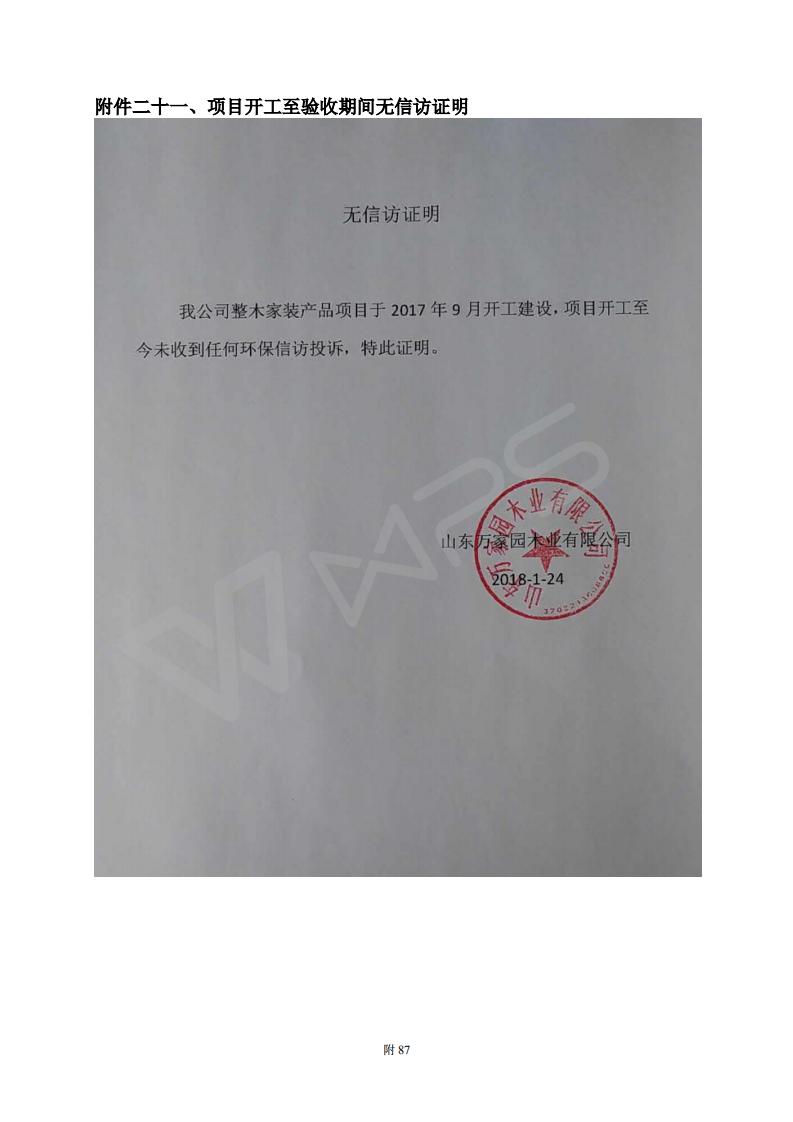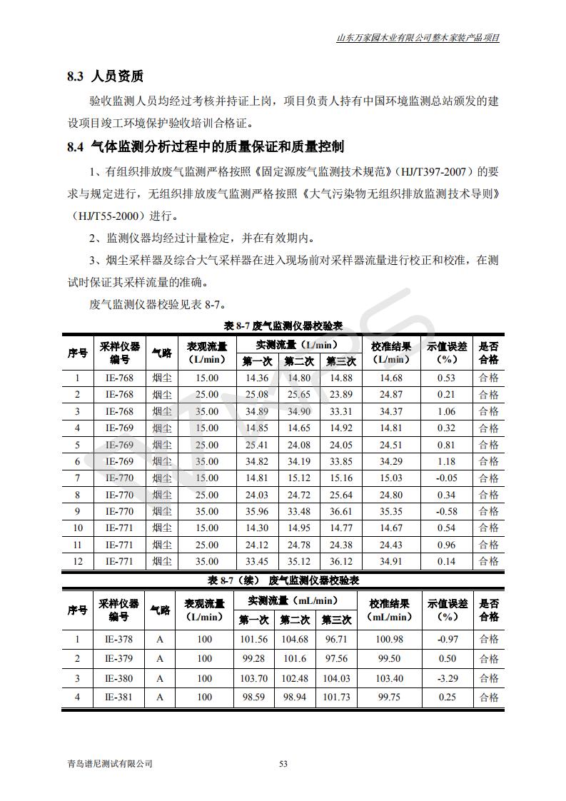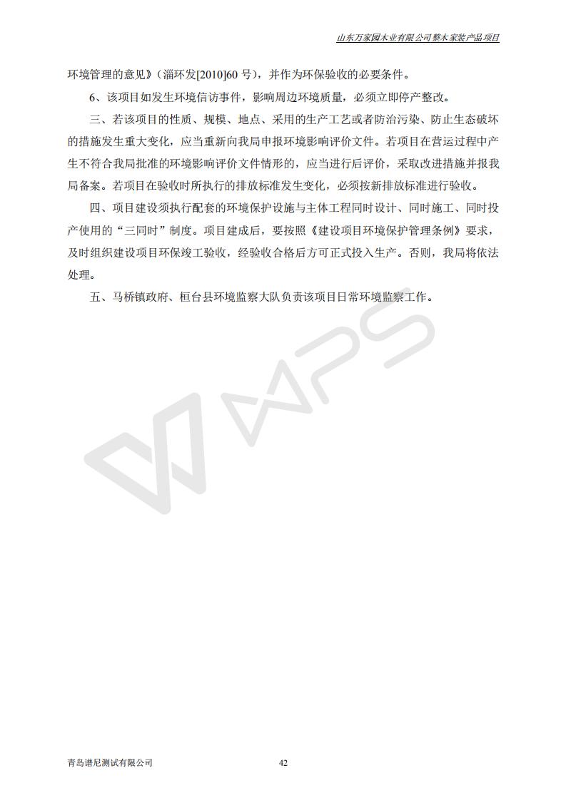 山东万家园木业有限公司整木家装产品项目竣工环境保护验收监测报告