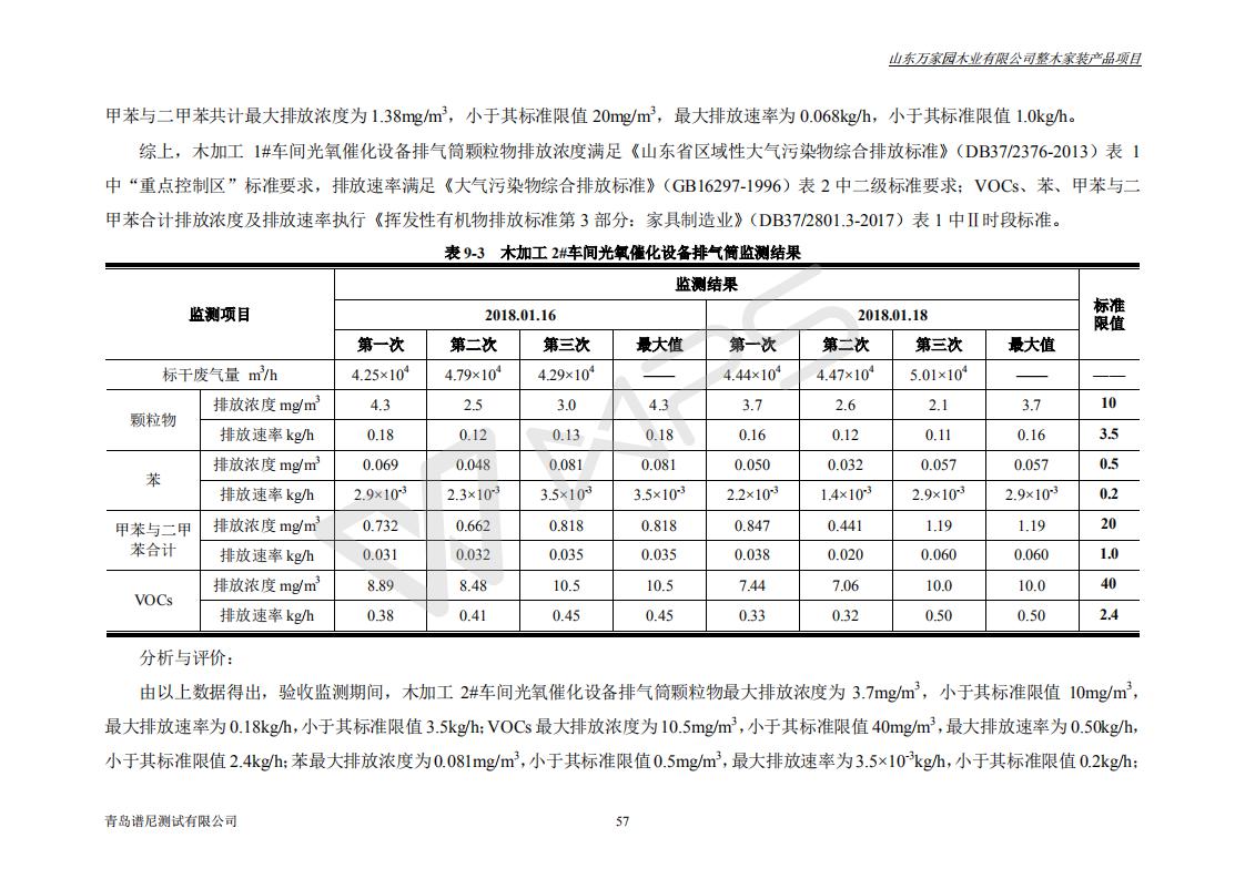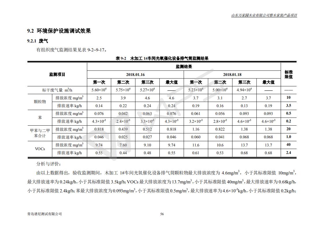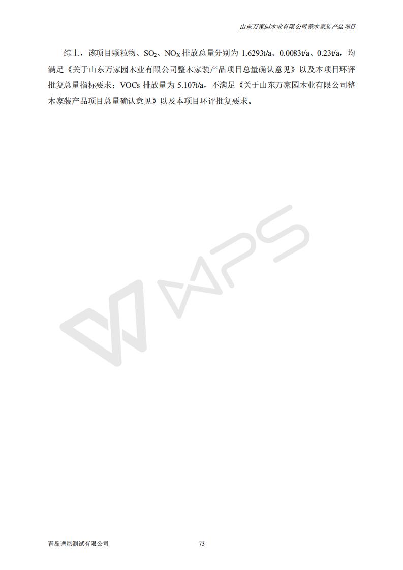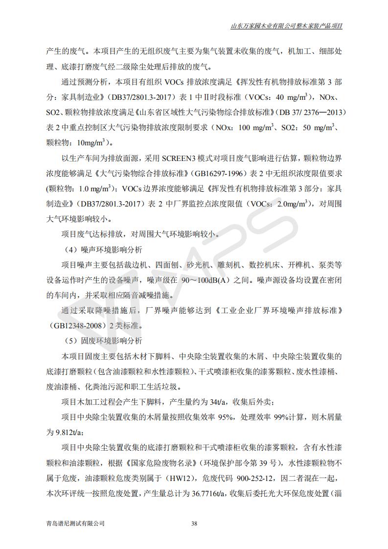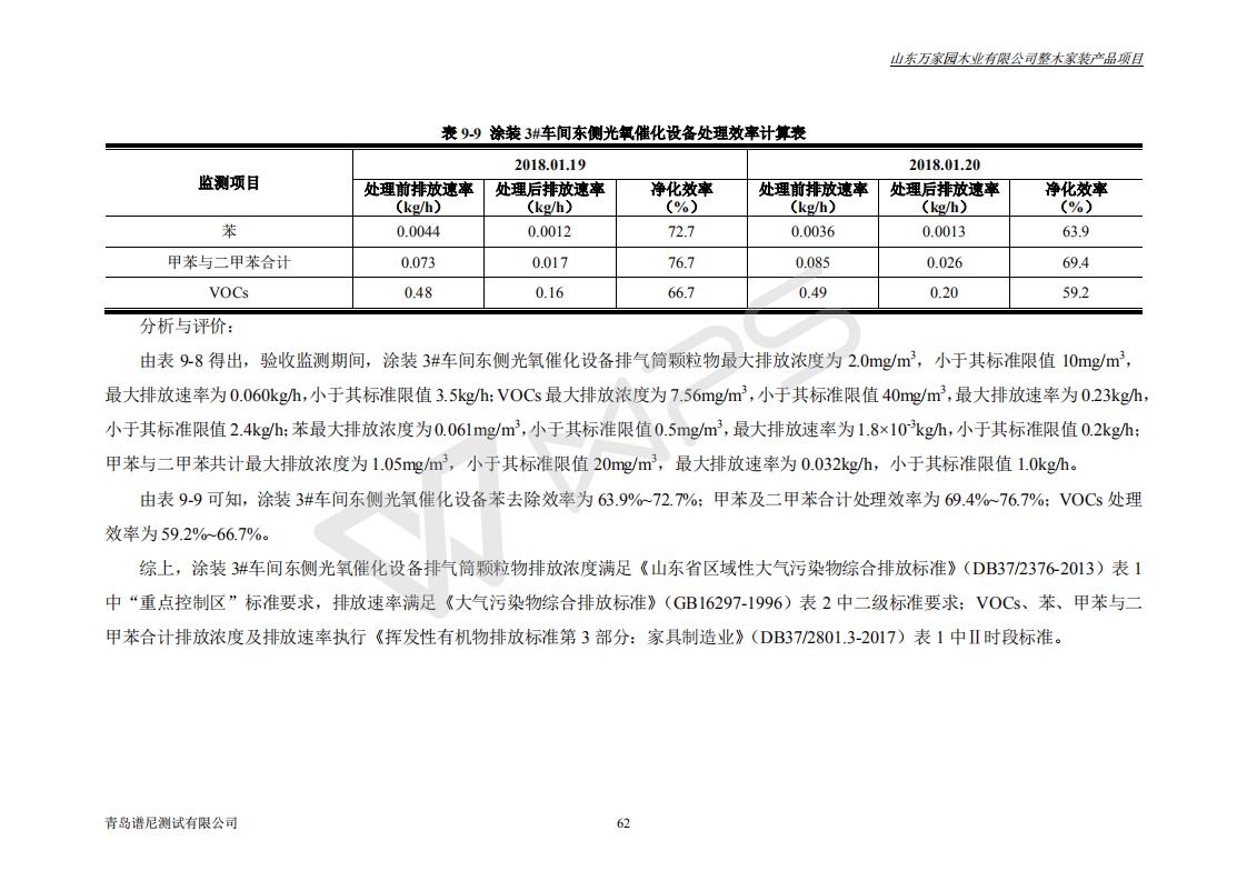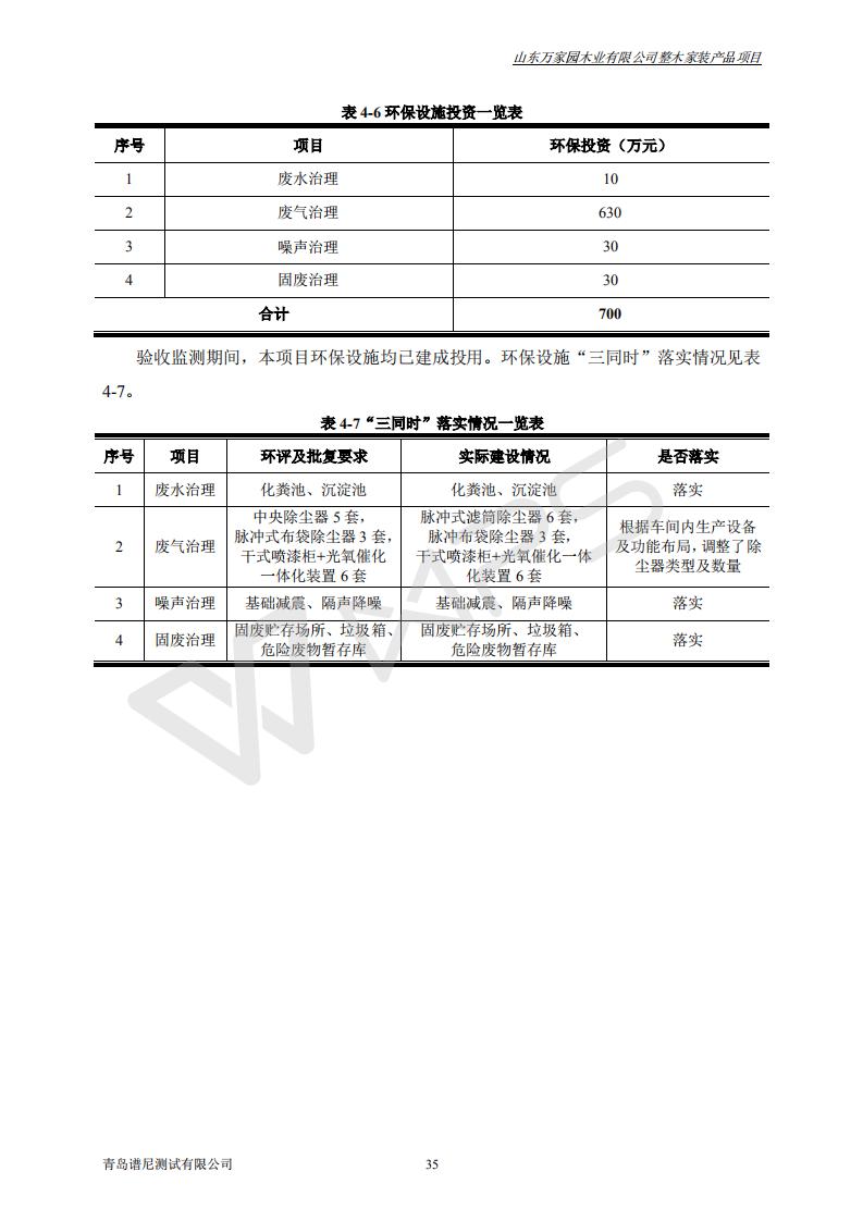 山东万家园木业有限公司整木家装产品项目竣工环境保护验收监测报告