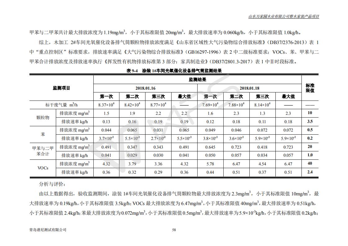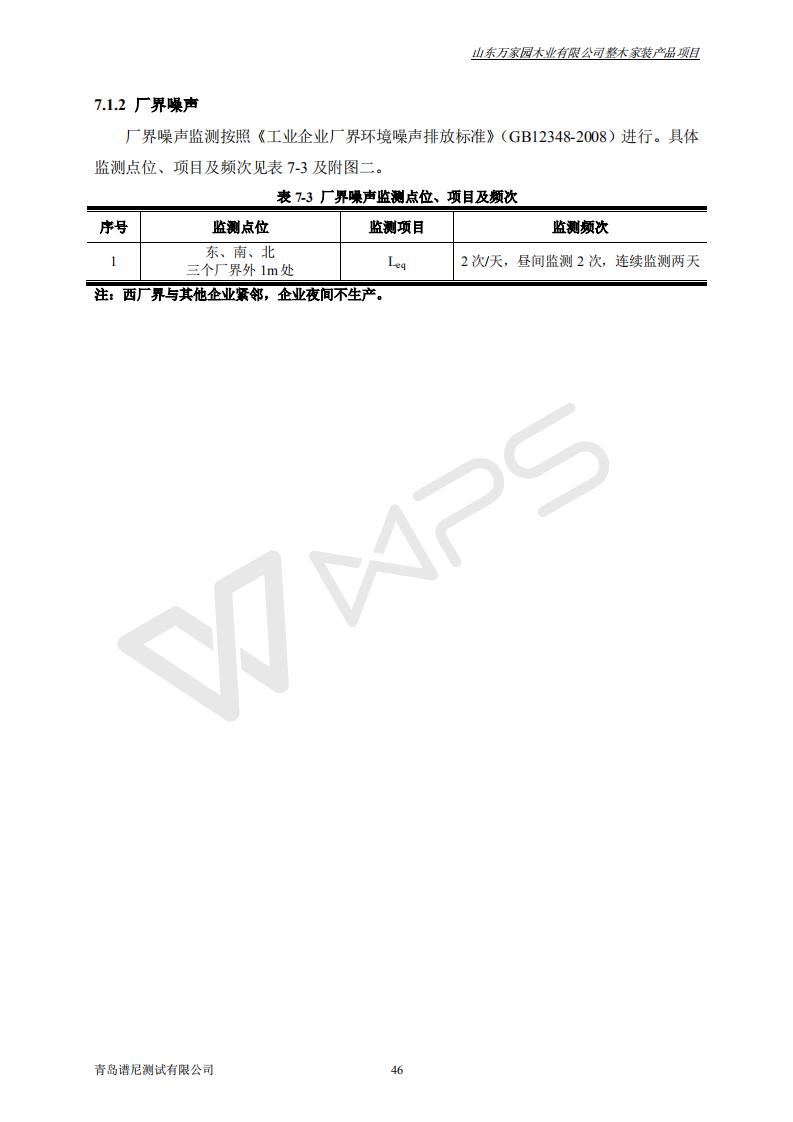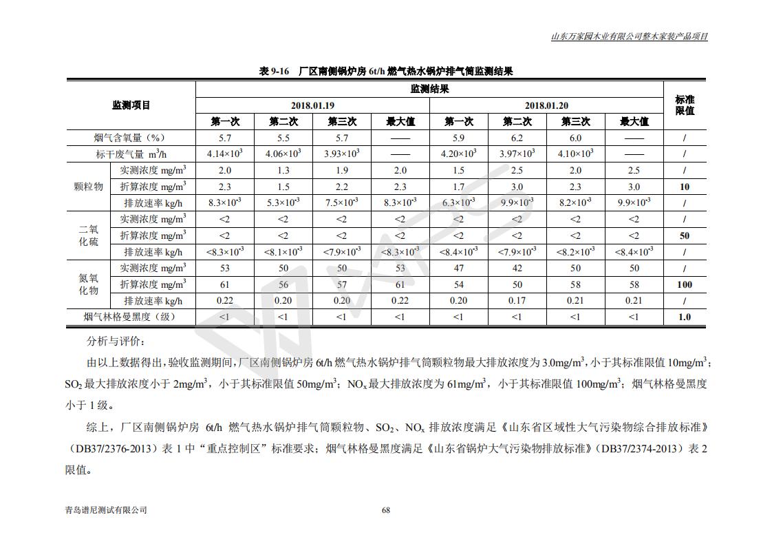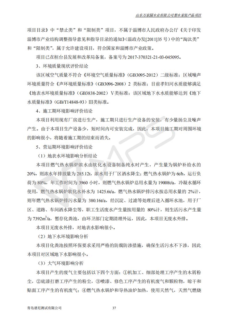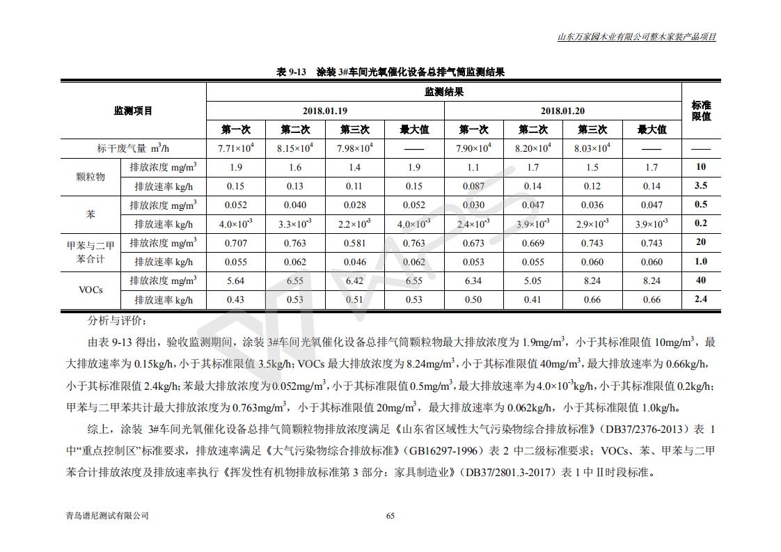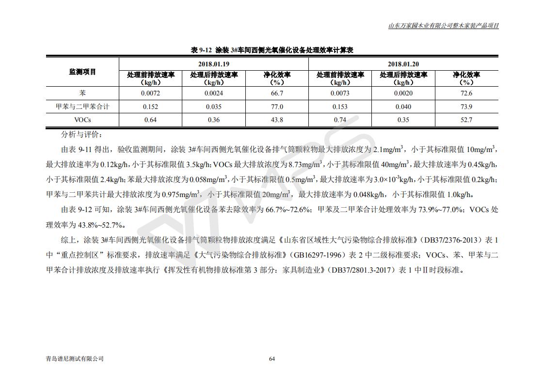 山东万家园木业有限公司整木家装产品项目竣工环境保护验收监测报告