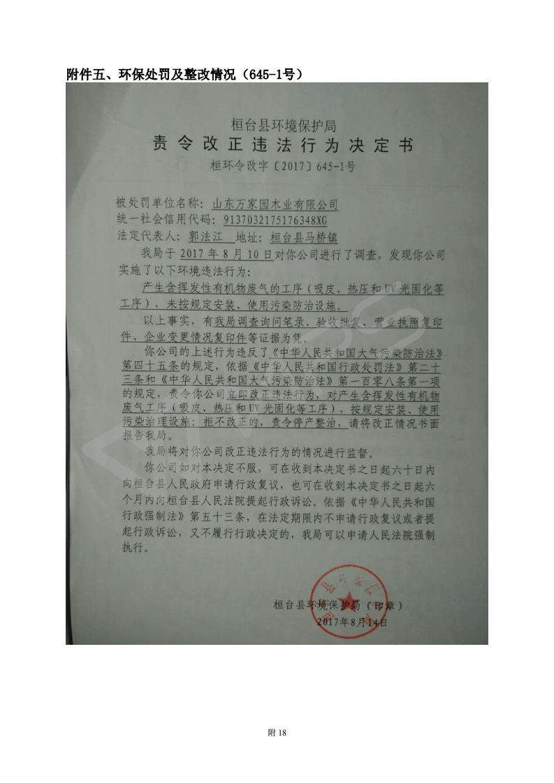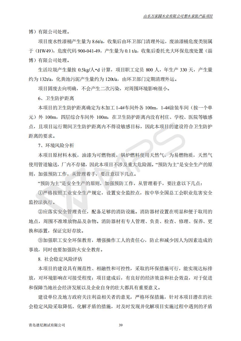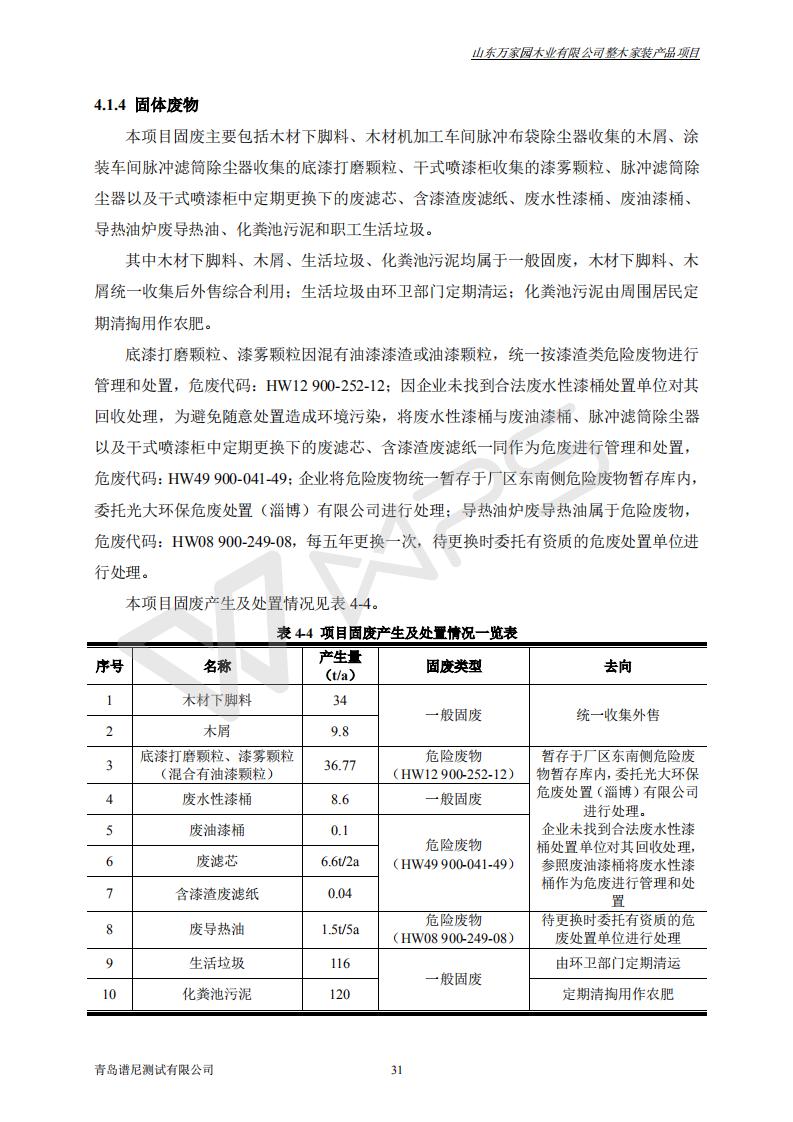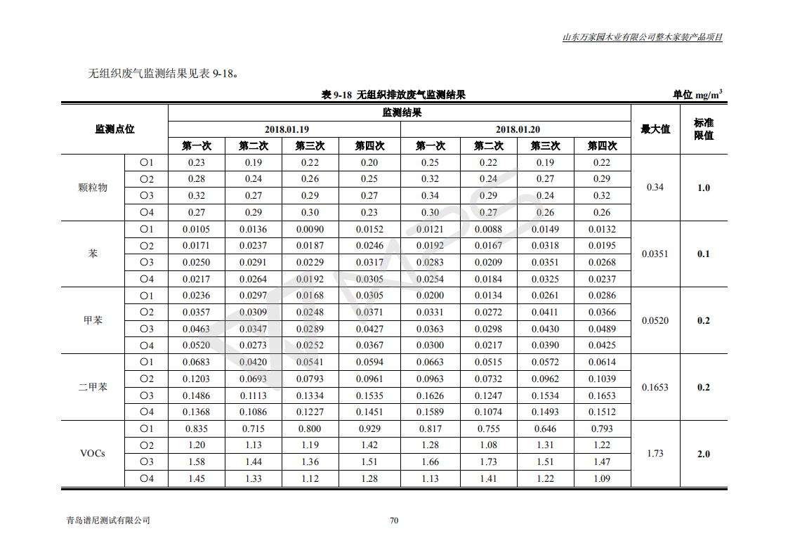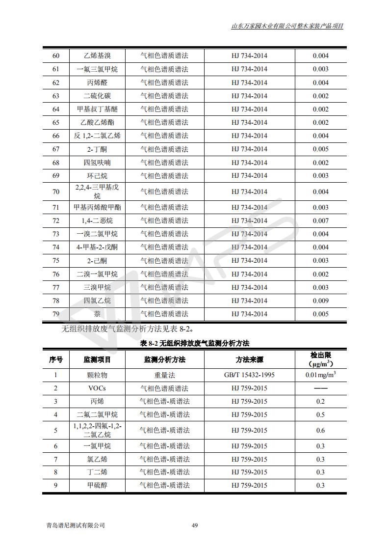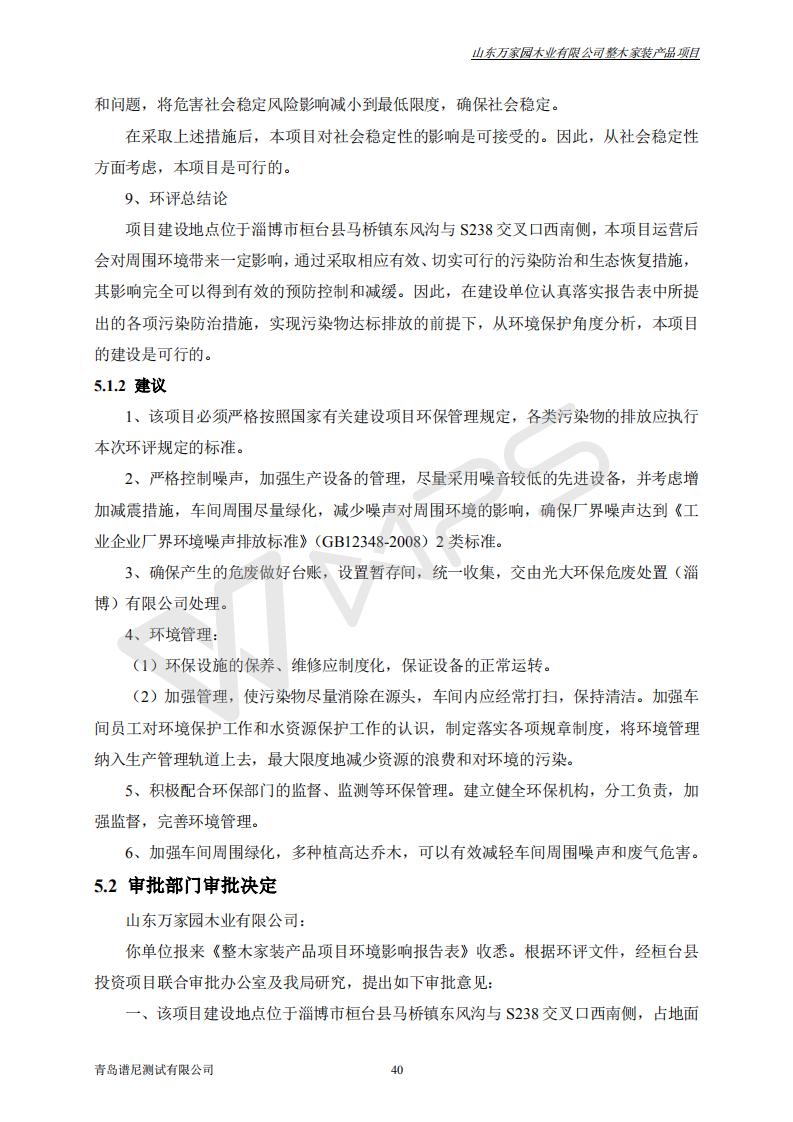 山东万家园木业有限公司整木家装产品项目竣工环境保护验收监测报告