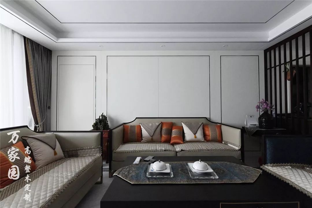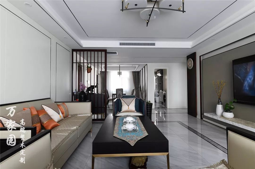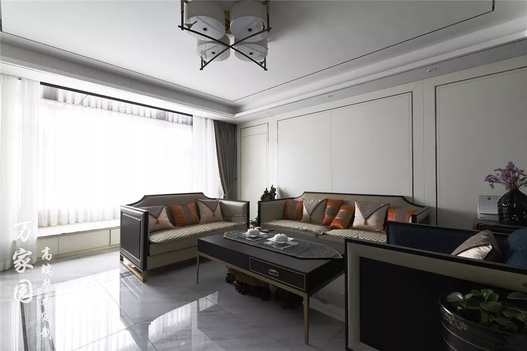 ▲客厅 在极简主义当道的现时代,新中式虽然在很多方面都进行了简化,但是它依然秉承了中式风格的传统内涵。整体空间白色打底,用极细的装饰线条勾勒出空间轮廓,使得层次感非常突出。