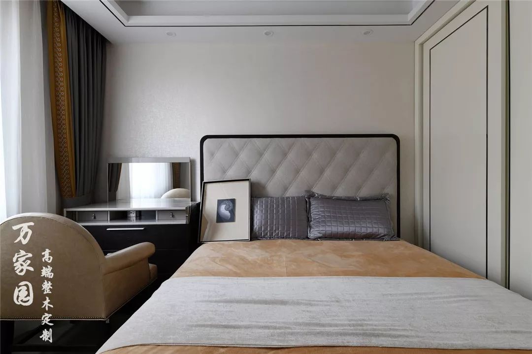 ▲卧室 有序交互的线条与现代材质完美碰撞,大而不空,厚而不重,有格调却不显压抑。置身在这样的空间里,无时无刻不在感受一种浪漫唯美的高雅情趣。