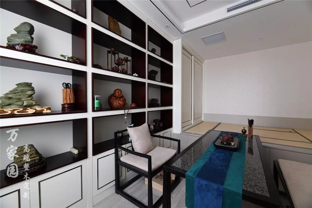 ▲书房 从两千多年前的汉朝至今。书房始终在文人雅士的生活中承载着“隔离世俗、容纳自我、清心博览、禅悟通理”的价值。墨香四溢的书架,古朴的书桌椅,与品茶与读书融为一体,渲染出一种温婉和谐的意境。 选更多产品上万家园天猫旗舰店 万家园整木定制,为您提供全套空间解决方案。