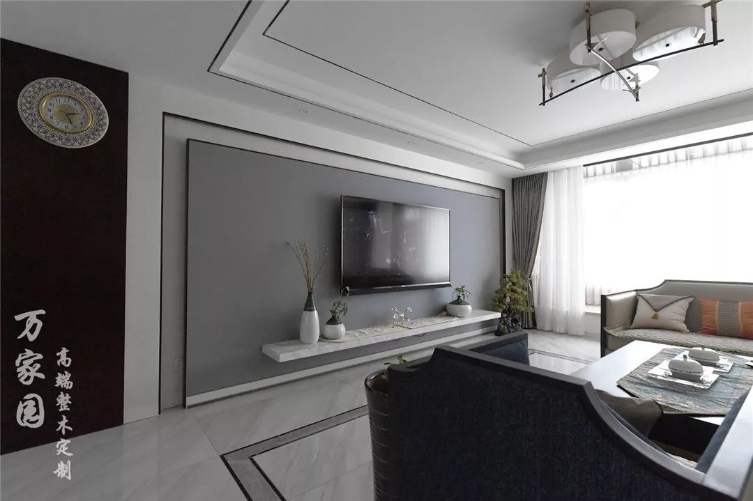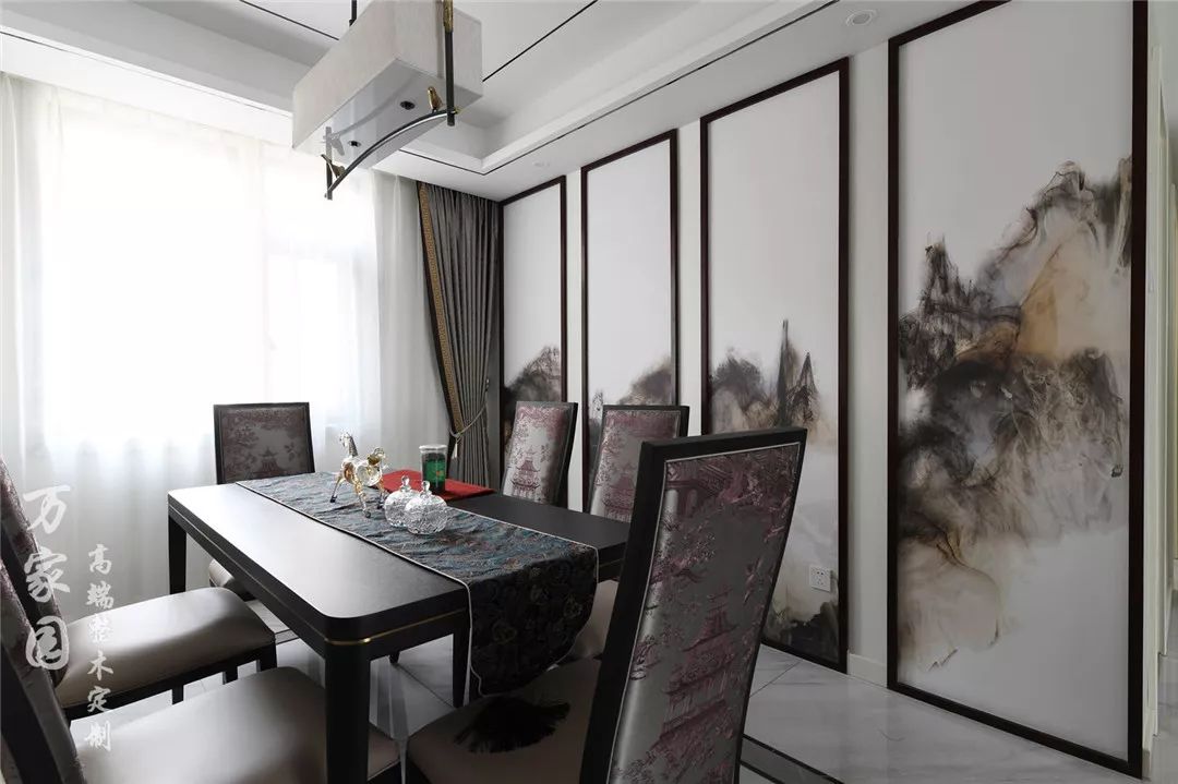 ▲餐厅 餐厅同样用水墨画作为背景,并没有奢华的配饰和摆件,缺极显文化底蕴,这就是新中式的魅力所在。