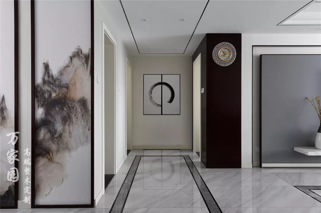 ▲玄关 大白墙搭配水墨画作——天地方圆,禅定其中,充满无穷的韵味。这是一种立足于传统文化的现代演绎,既扎根于传统,又施之以创新。