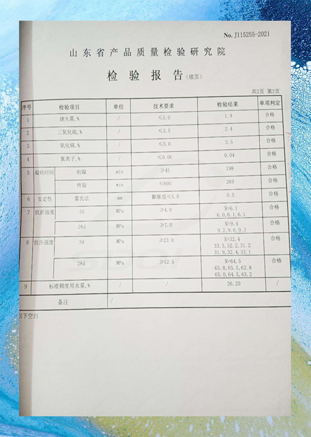 (1)细度:筛孔尺寸为80µm的方孔筛的筛余不得超过10%或者45µm方孔筛的筛余不大于30%,否则为不合格。