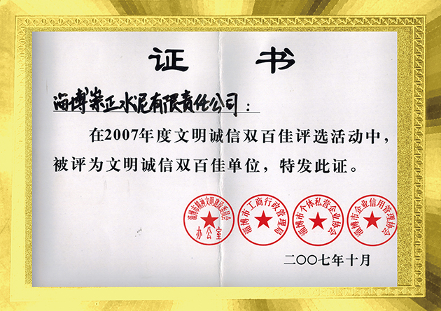 淄博市文明诚信双百佳单位